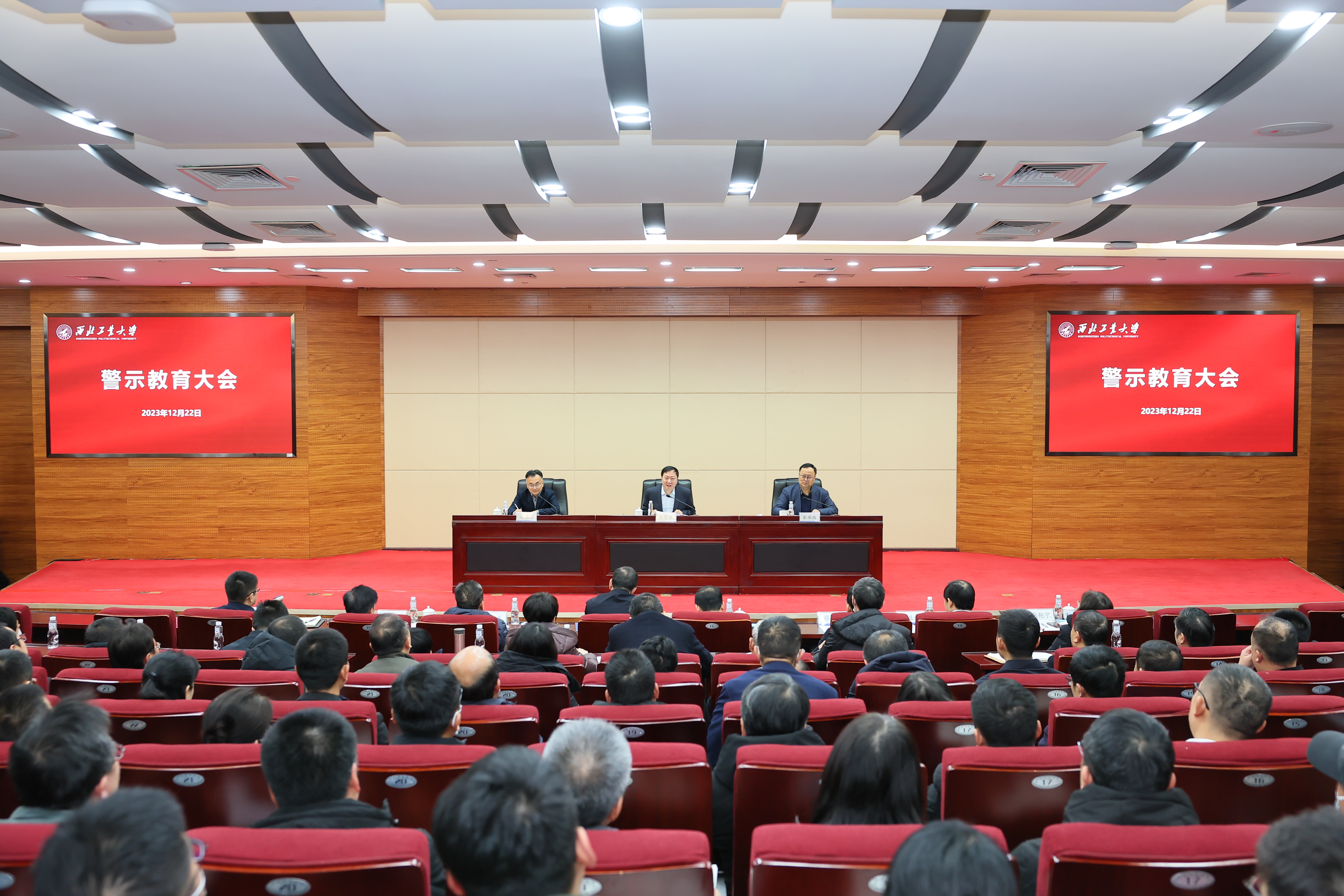 12月22日,鸭脖官网召开警示教育大会,深入推进全面从严治党向纵深发展,持续营造风清气正的政治生态和干事创业的良好环境。全体校领导、校党委委员、纪委委员、中层干部参加会议。学校党委书记李言荣,校长宋保维分别讲话并讲授廉政党课。党委副书记、纪委书记、监察专员吕卫东通报了违规违纪违法典型案例。大会由宋保维主持。