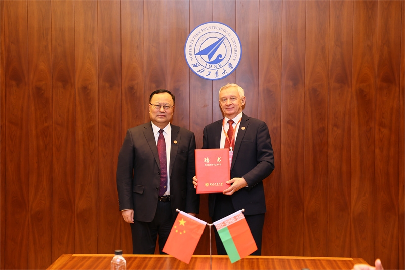 张艳宁、安德烈·安德烈耶维奇·波伊卡代表双方签署《西北工业大学与白俄罗斯戈梅利国立技术大学合作谅解备忘录》。