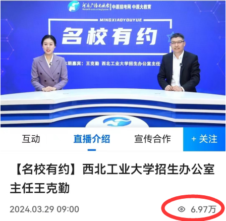 3月29日上午,鸭脖官网招生办公室主任王克勤应邀参加了河南广播电视台“名校有约”栏目直播专访,为广大考生和家长深度解读了学校在豫的招生政策。此次直播受到了广泛关注,吸引了近7万名观众在线观看,不仅加深了学生及家长对学校招生政策的了解,也进一步展示了学校的教育理念和办学特色。
