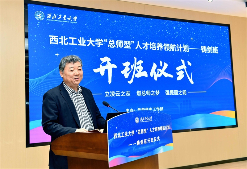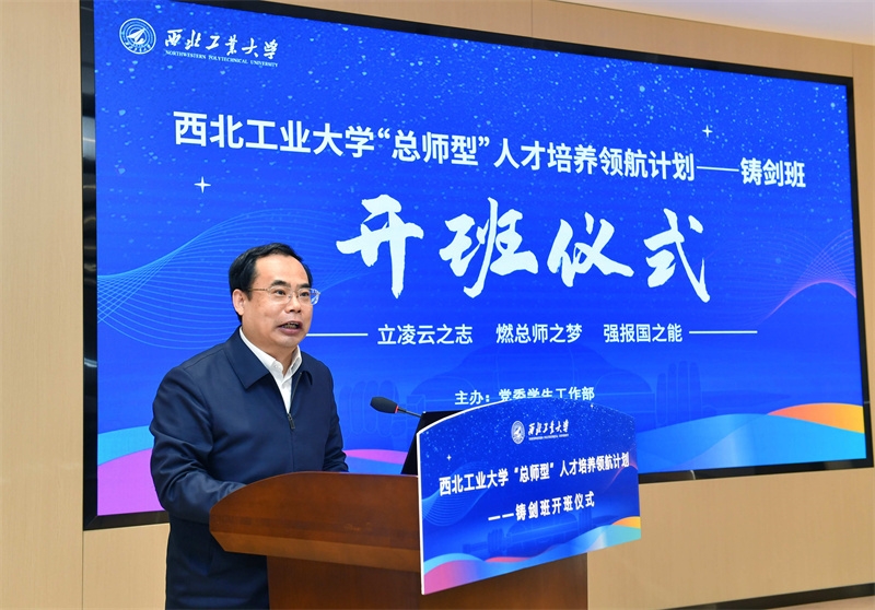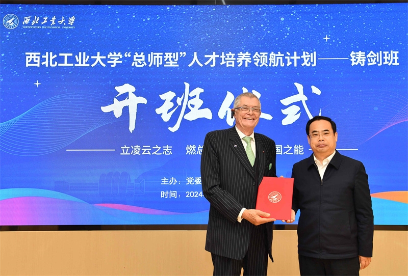 4月14日上午,西北工业大学“总师型”人才培养领航计划——铸剑班开班仪式在长安校区顺利举行。西北工业大学党委常务副书记程基伟,比利时前驻华大使、终身荣誉大使、欧盟中国联合创新中心联合创始人Patrick Nijs,全国高校美育指导委员会委员、西北工业大学艺术教育中心首席专家刘惠教授;鸭脖官网优秀校友,中国航空工业集团公司西安飞行自动控制研究所GNC事业部总工程师、集团公司首席专家、西北工业大学兼职教授石鹏飞,中国航空工业集团公司西安航空计算技术研究所副所长张玲研究员,中国航空工业集团公司第一飞机设计研究院某型号副总师、集团公司特级技术专家、正高级工程师贾欲明,中国航空工业集团公司第一飞机设计研究院某型号副总师、集团公司一级技术专家、高级工程师李国栋;全国道德模范徐茂博士,西北工业大学党委宣传部、党委学生工作部、教务部、对外联络办公室、图书馆、艺术教育中心、团委负责同志和各学院党委副书记、辅导员代表以及第一届铸剑班全体学员参加本次开班仪式。仪式由铸剑班学员、航天学院2022级本科生吴丛希主持。