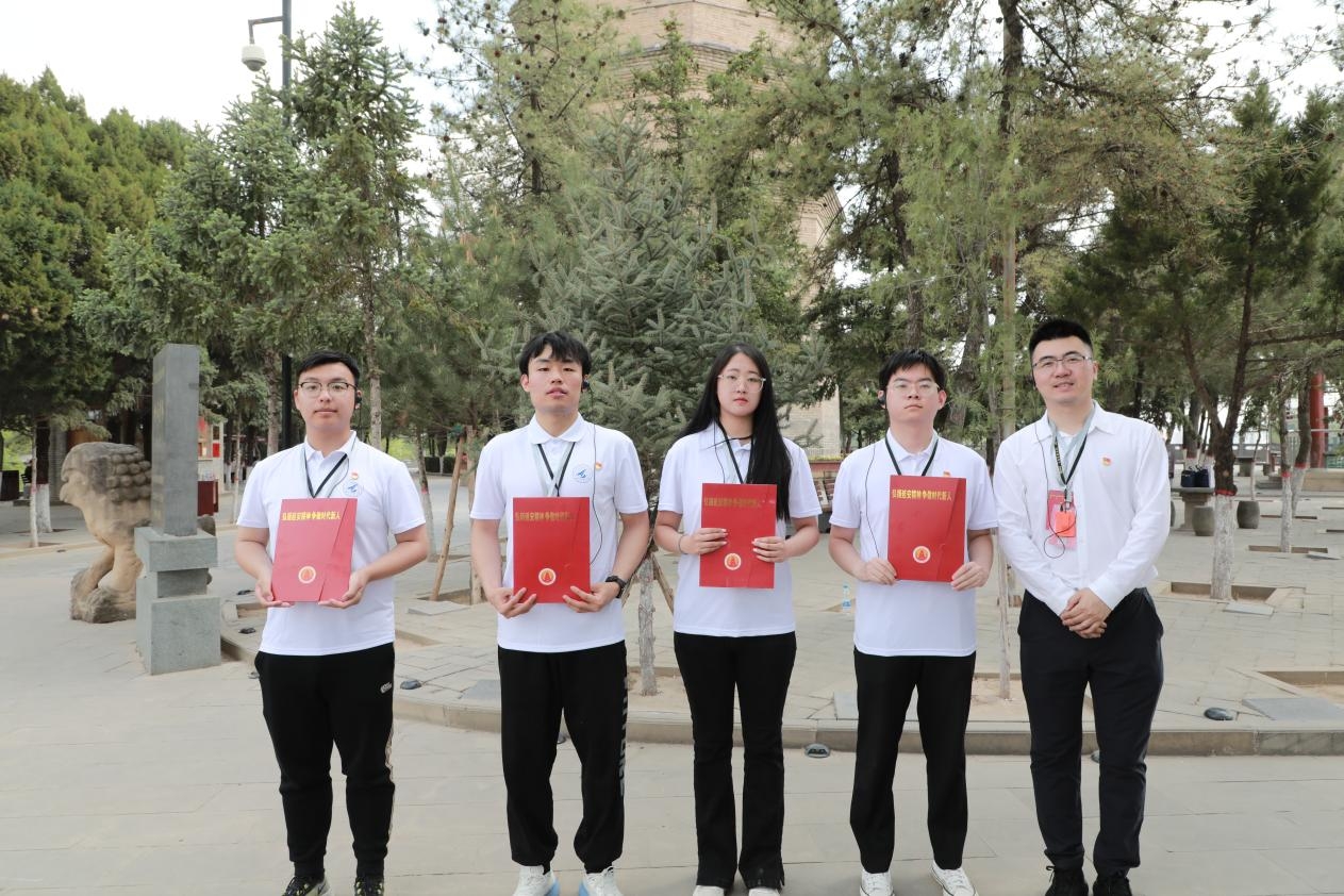 实践活动最后,实践队在宝塔山上开展活动总结。在党委学生工作部张文静的带领下全体实践队员重温入党誓词。管峻为学员代表颁发结业证书。实践队员代表南宗琪、王越凡、张微萌、邹礼彦分享了学习感悟。同学们纷纷表示此次实践教育活动是一场淬炼思想、汲取力量的铸魂之旅,通过实践受到了深刻的精神洗礼和行动激励,将以实践为契机,进一步强化学思用贯通、知信行统一,做延安精神的坚定信仰者、积极传播者、忠实践行者,努力成长为又红又专、全面发展的“总师型”人才,在实现中华民族伟大复兴中国梦的新长征路上奋勇搏击!