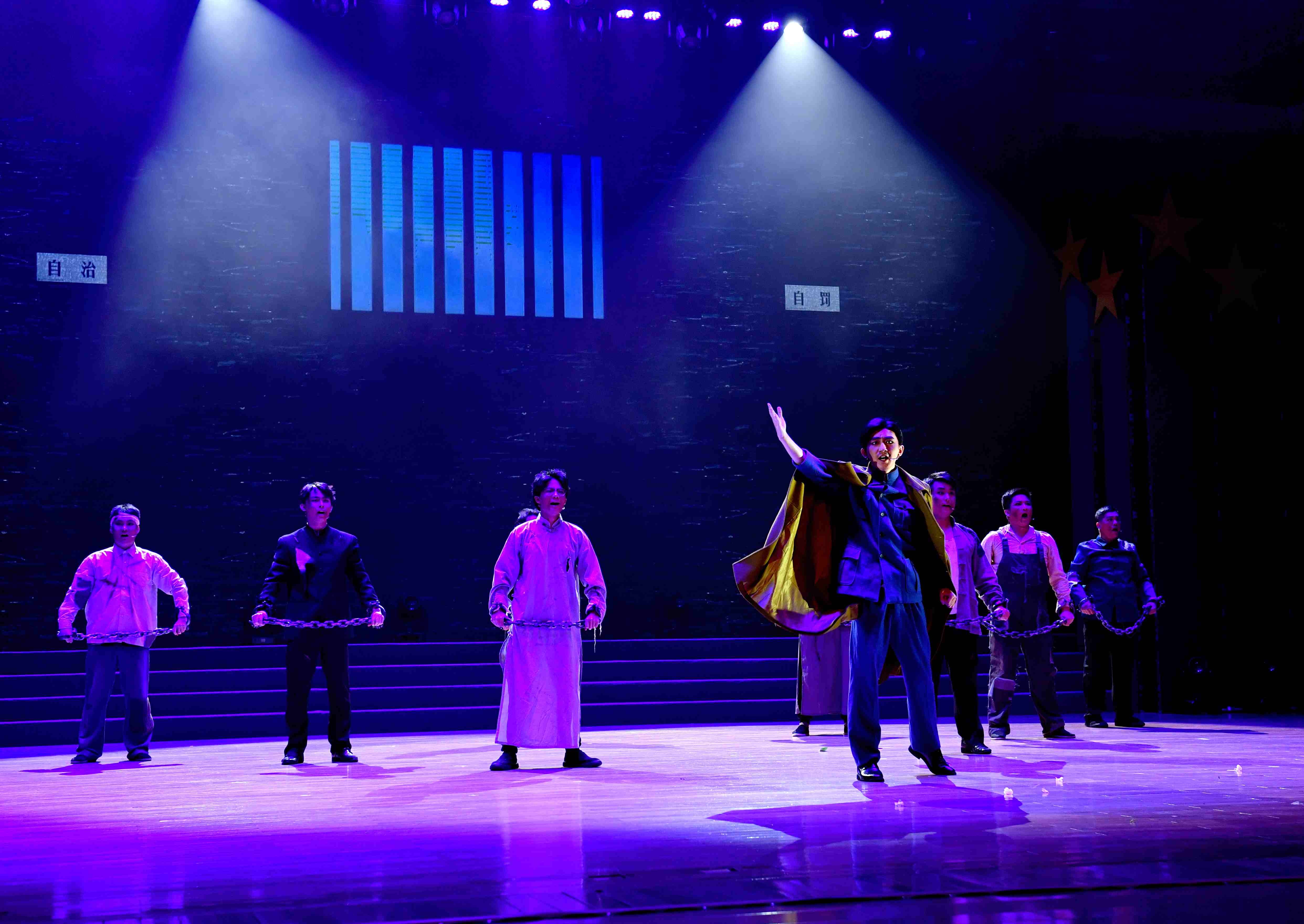 “一代青年以自己的青春岁月换另一代青年的幸福安宁”,在短剧《归来》《远洋来信》、情景诵《等待》中一代代青年人放弃优渥的生活,创造了新中国的无数个第一,我国的第一条铁路、第一颗原子弹、第一颗氢弹、第一枚人造卫星……青年何为?他们说,青年,应破浪!
