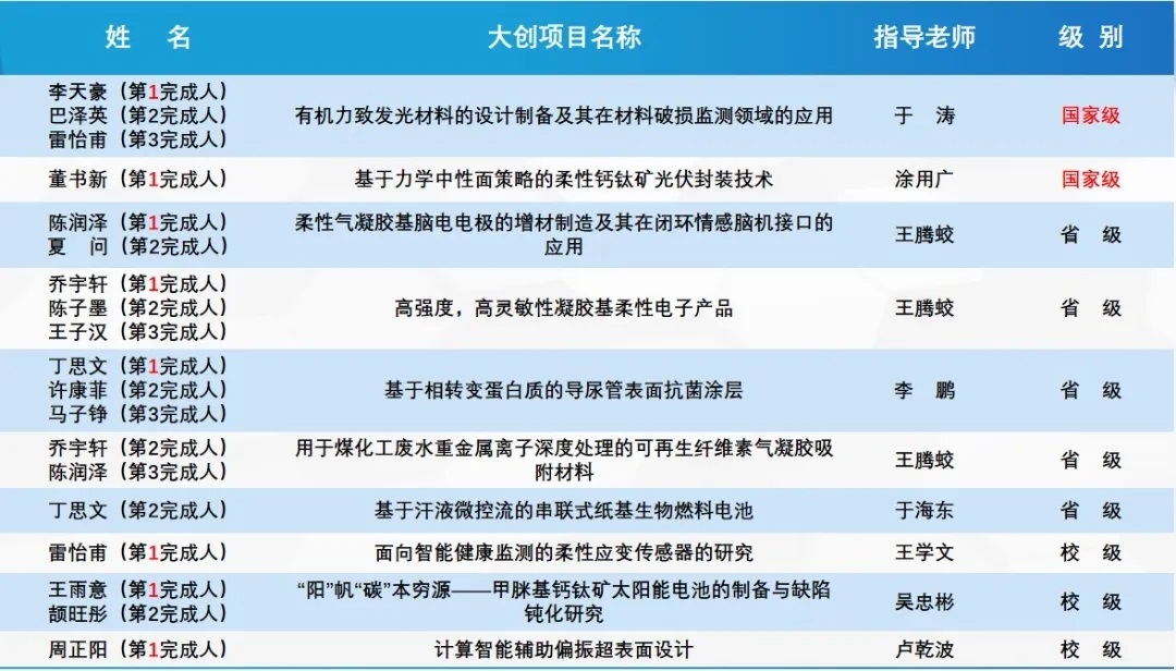 在首席教授黄维院士,班主任谷龙教授和辅导员刘文星老师的指导下,班级15位同学瞄准科技前沿,矢志成才报国,以满腔热血倾注柔性电子技术发展,在科研竞赛、创新创业、社会实践等领域全面开花。
