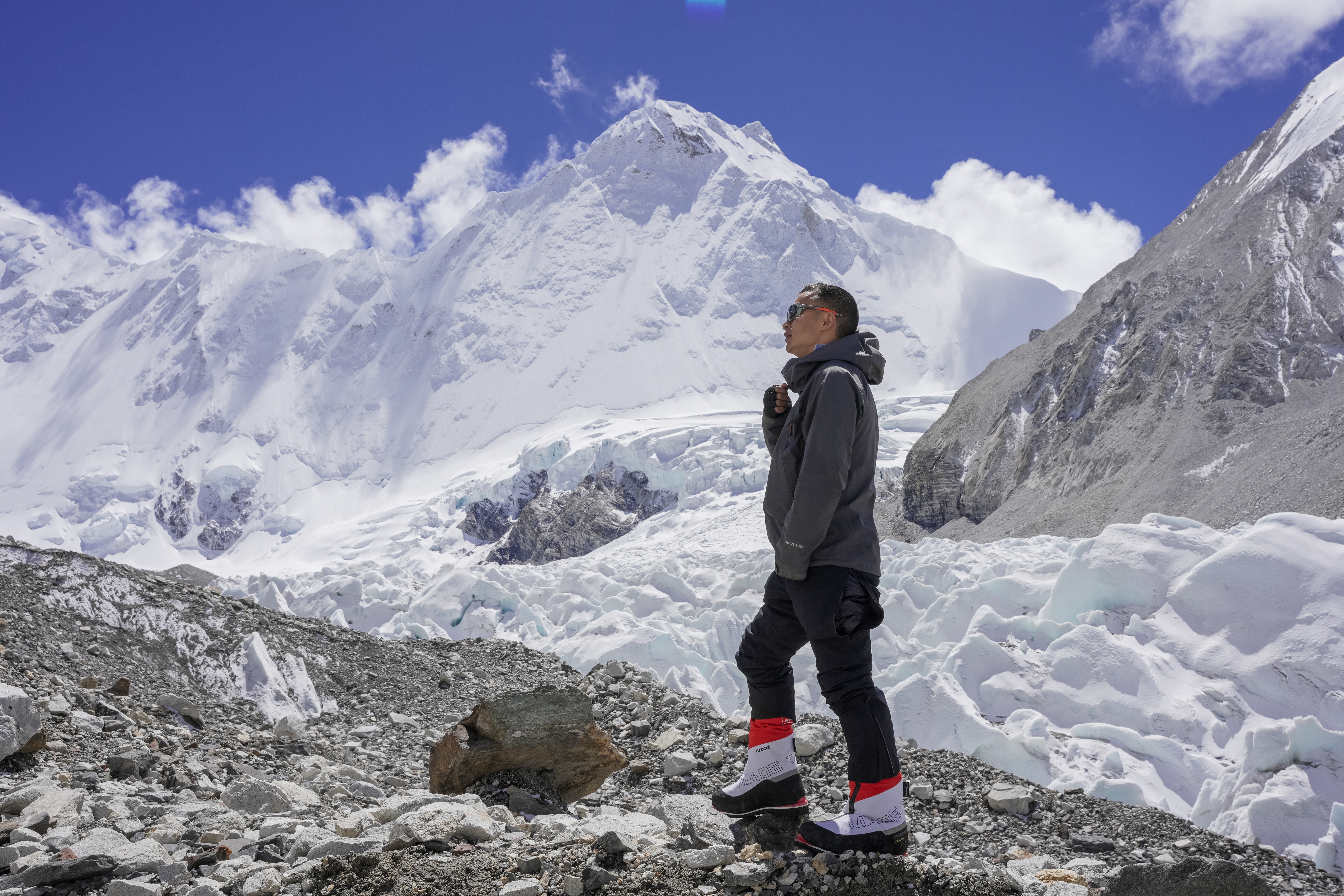 从拉萨到日喀则,到海拔5200米的珠峰大本营,登陆5800米的中间营地,爬上珠峰北坡6500米被称为“魔鬼地带”的营地。在为期40多天的历练中,余国明开始一点点推进,“让自己不断适应新的海拔高度”。恶劣的天气带来了一系列的不可控因素,还有饮食、体温控制、睡眠质量、体能储备、心理预期管理、地理条件等等。超过7500米,必须使用氧气,“这已经是正常人类的极限了”,撒满金色阳光的珠峰之巅,看起来“近在咫尺”,实际上却是“难若登天”,余国明只能手脚并用攀向顶峰。一路走来虽然险象环生,但途中雄浑壮观的景象,让他忘却了艰辛,只剩下震撼和激动。