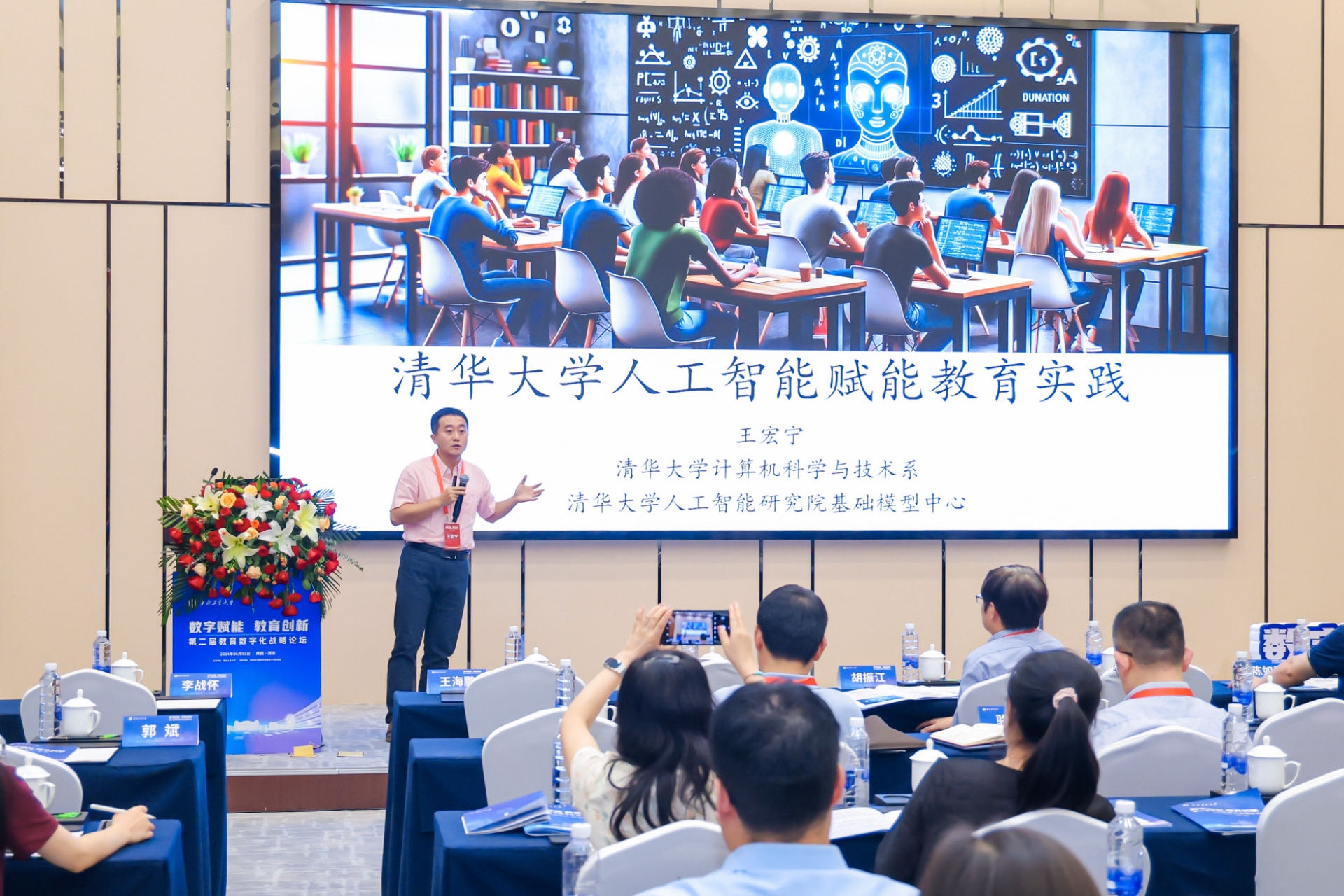 鸭脖官网副校长张艳宁致欢迎辞,向与会嘉宾学者介绍了西工大脉源三支、“西工大现象”和“总师育人文化”,相信本次论坛会为教育数字化发展注入新的活力,推动人工智能在教育领域的广泛应用,构建人工智能全方位互动的教育体系,期待与大家共同推动教育数字化战略发展,预祝论坛圆满成功。