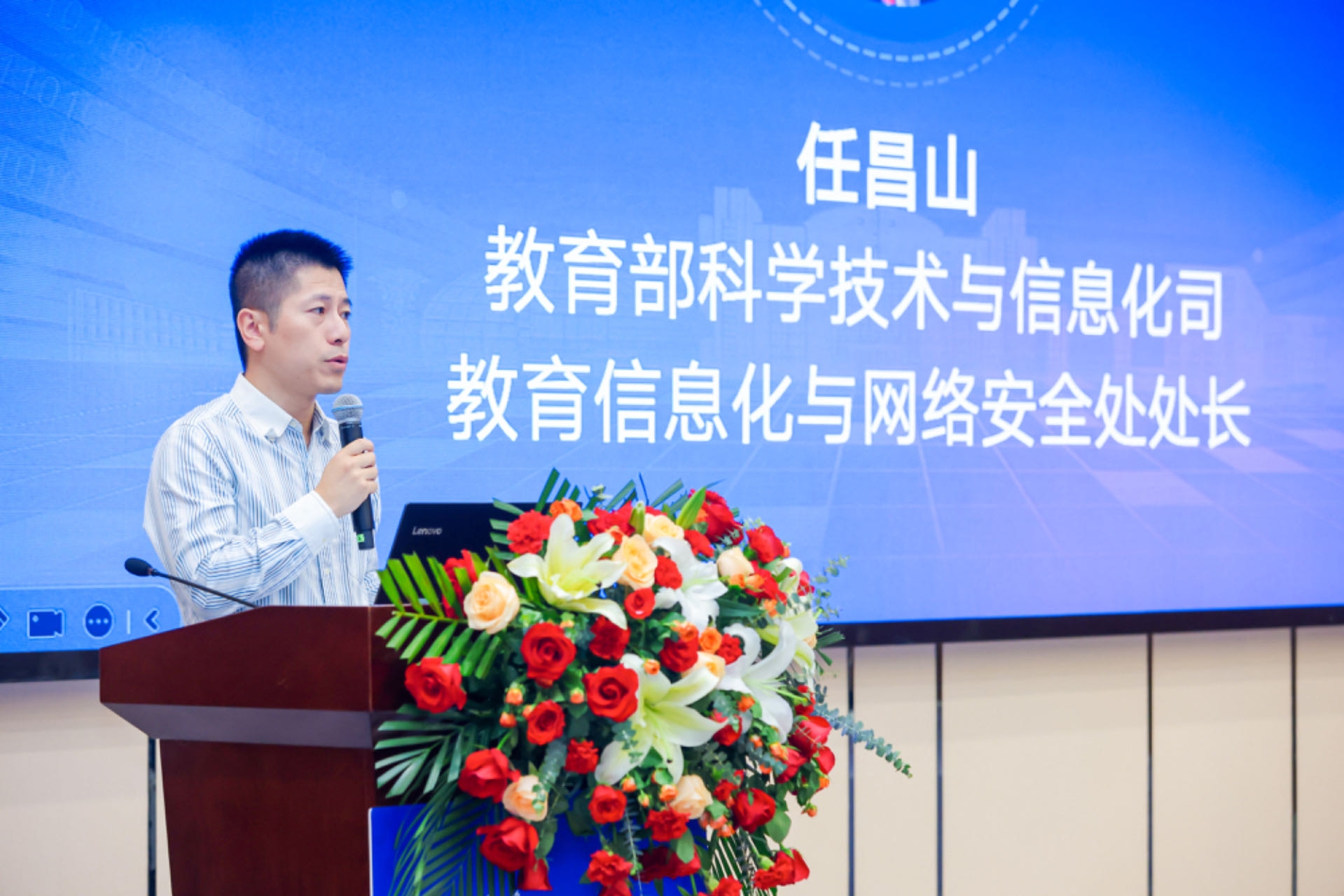 教育部科学技术与信息化司教育信息化与网络安全处处长任昌山出席论坛并致辞。他指出,发展数字化教育是每名教育工作者应有之志、应尽之责、应立之功。就教育数字化发展他提出三点建议:一是要转变思想理念,加快教育数字化进程;二是要深化平台应用,调动师生应用国家平台的积极性;三是要推进人工智能大模型应用,构建全国数字教育新生态。