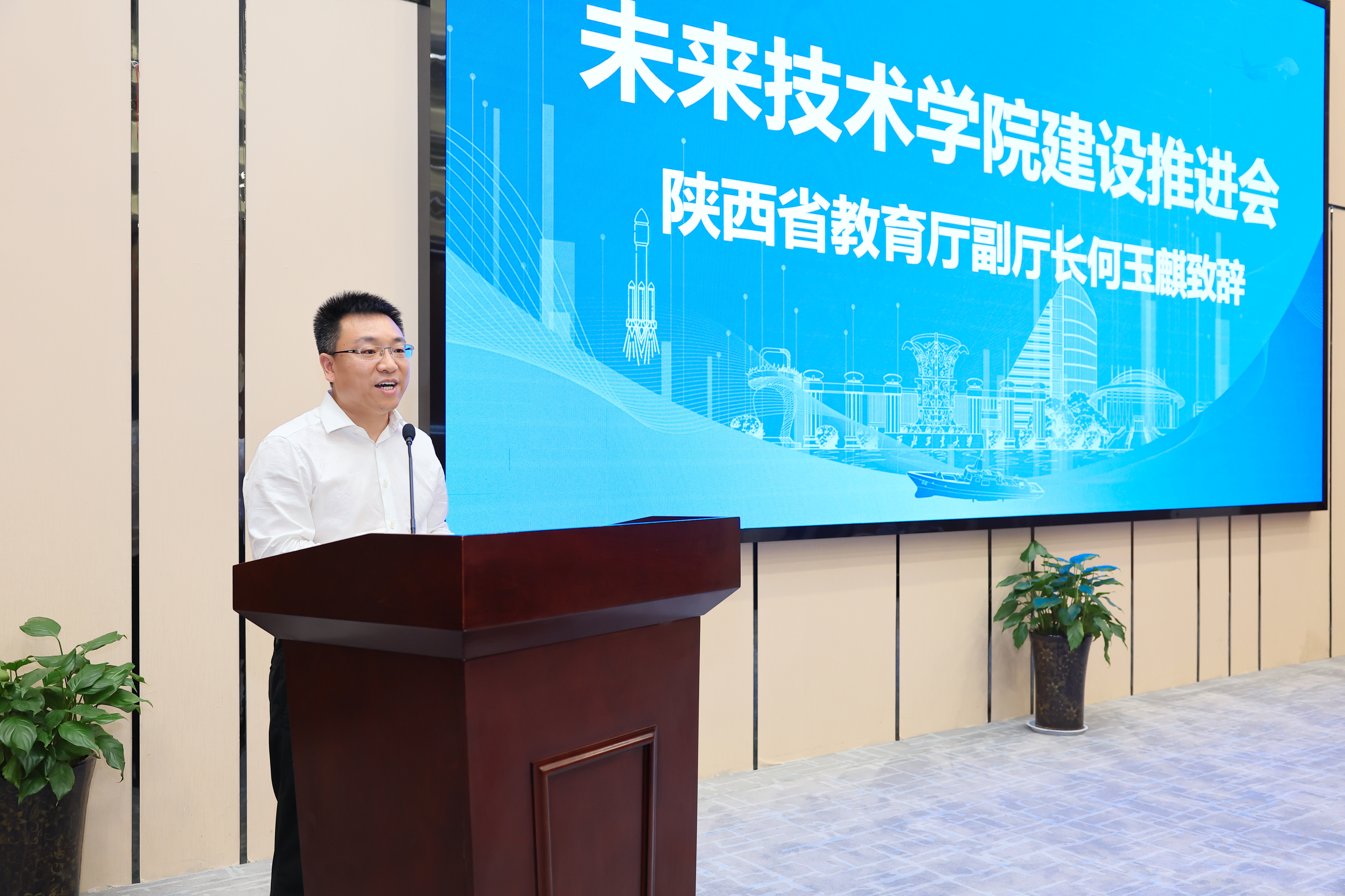 何玉麒代表陕西省教育厅对会议的召开表示祝贺。他表示,西北工业大学未来技术学院的建设发展对全省高等教育人才培养、科学研究都发挥着重要作用,希望学院能够形成人才培养的大资源和科学研究的大平台,培育“总师型”未来科技创新领军人才,推进教育、科技、人才“三位一体”协同融合发展。