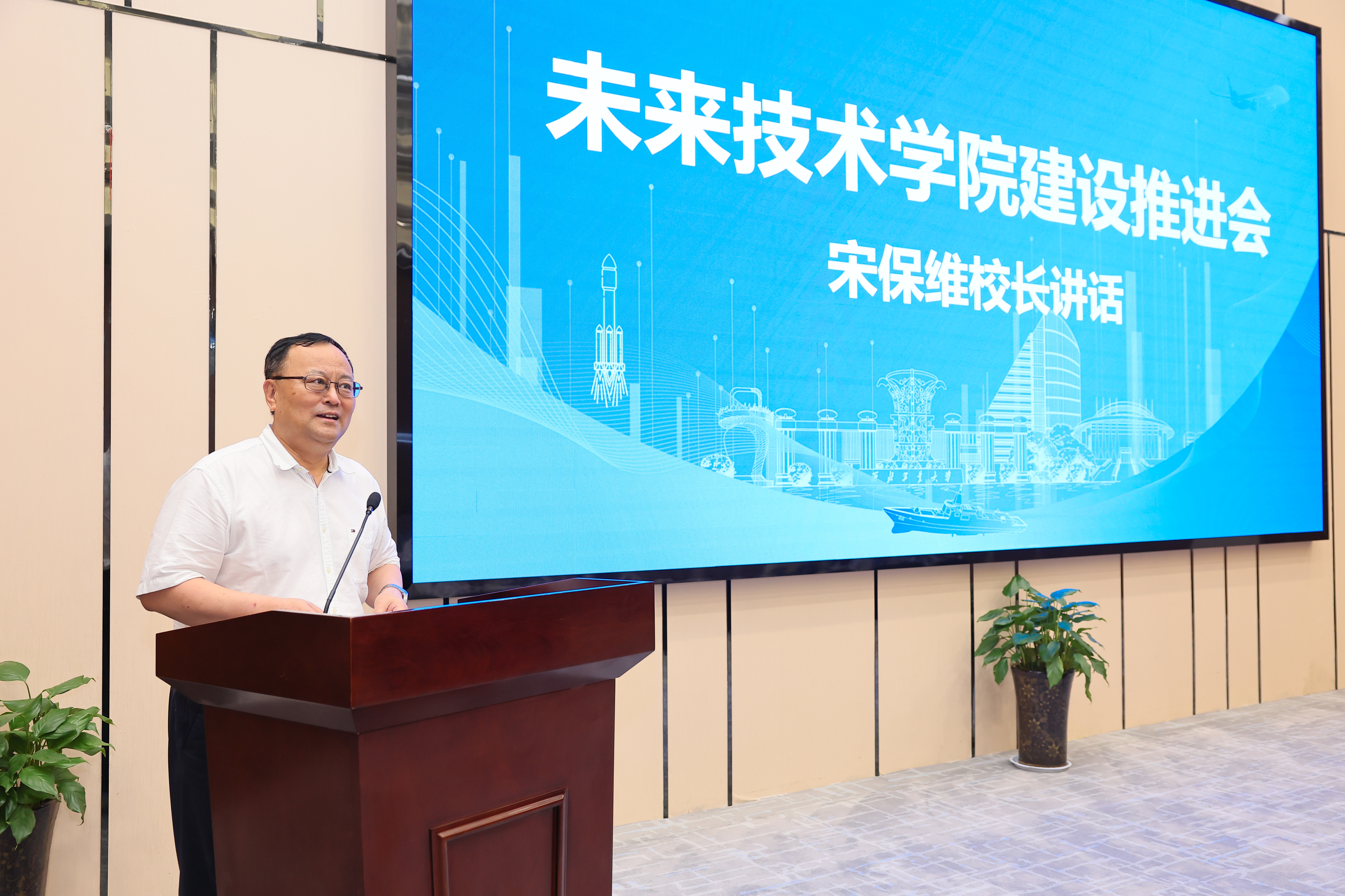 宋保维向与会专家和领导对未来技术学院发展建设给予的关心、帮助和指导表示感谢。他指出,推进未来技术学院的建设发展,既是扎实落实新工科建设再深化、再拓展、再突破的应然之举,也是学校做好未来科技创新领军人才的前瞻性和战略性培养,抢占未来科技发展先机的重要途径。作为陕西省首批建设的未来技术学院之一,西工大发展未来技术学院具有非常好的基础,相信学院一定能够为国家“三航”等领域培养更多交叉复合型人才。作为实现“教育、科技、人才”统筹一体推进的重要载体、学校教育教学改革前沿阵地和拔尖创新人才培养高地,对于学院的未来发展,他提出了五点要求:一是要紧盯未来科技前沿,凝练学院发展特色。没有特色就无法生存,要想生存必须特色化。要瞄准国家重大决策部署和时代发展需求,结合学校“总师型”人才培养目标谋篇布局。要围绕“三航”特色凝练独具西工大优势的未来技术特色。二是要深化教育教学改革,创新人才培养模式。如何培养更好的、符合国家战略需求的人才,需要以“总师型”人才特质为牵引创新培养模式。要以“总师育人文化”为引领重点培养学生的阅读能力、表达能力、文字写作能力,扎实推进课程改革。三是要坚持科教融合,推进交叉融合。学院集聚了学校“三航”特色等多种元素,要打造贯穿学科基础知识、专业知识、项目组织能力、工程实践能力培养的项目式课程,实现对人才的“定制化”培养。四是要汇聚各方各类资源,加快平台建设。要打造一流的实验室、在线资源和环境,拓展学术交流、科研训练和综合实践活动的场所和平台。要利用陕西在航空、航天、船舶等领域的发展优势,深化与国防工业部门的合作,实现拔尖创新人才的共享共用。五是要优化管理机制,健全质量培养体系。人才培养是多方面、多环节的,全校每个部门都是人才培养的重要支撑,每一位员工都应该为人才培养出谋划策。全校上下拧成一股绳,从思想、制度等方面保障学生健康快乐成长成才,举全校之力办好未来技术学院。他表示,相信在陕西省的大力支持下,在广大校友、兄弟单位的关心帮助下,在学校各部门各学院的通力协作下,未来技术学院一定能够为国家培养更多的优秀人才,一定能够在国家战略科技前沿和国民经济主战场建功立业。