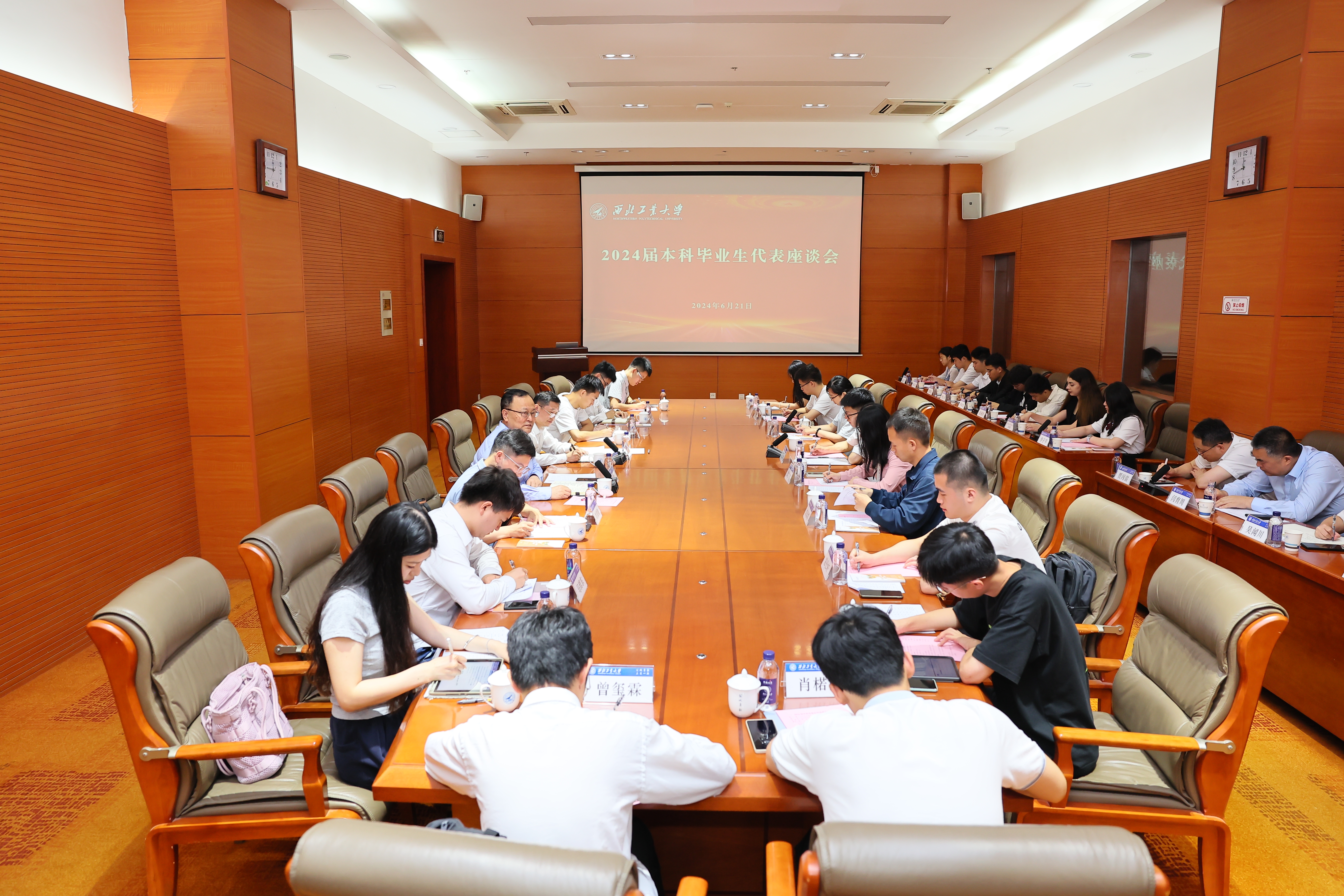 6月21日,鸭脖官网2024届本科优秀毕业生代表座谈会在长安校区召开。校长宋保维与来自各学院的24位优秀毕业生代表亲切交流。座谈会由副校长詹浩主持。