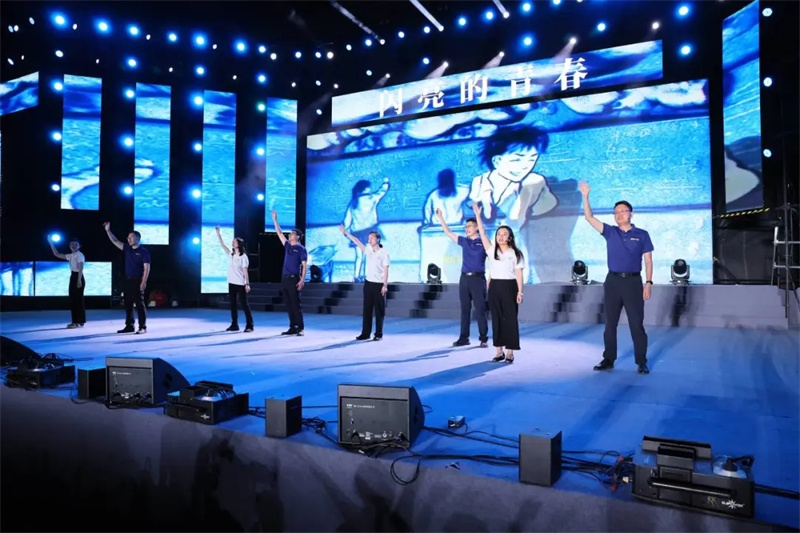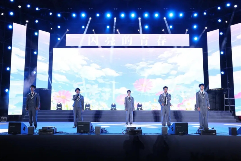 挥舞着旗帜,我们即将奔赴山海,寻找自己人生的无限可能。朗诵和歌曲《青春的答案》,在最后调动起全场的热情,尽情欢庆,我们为青春喝彩。