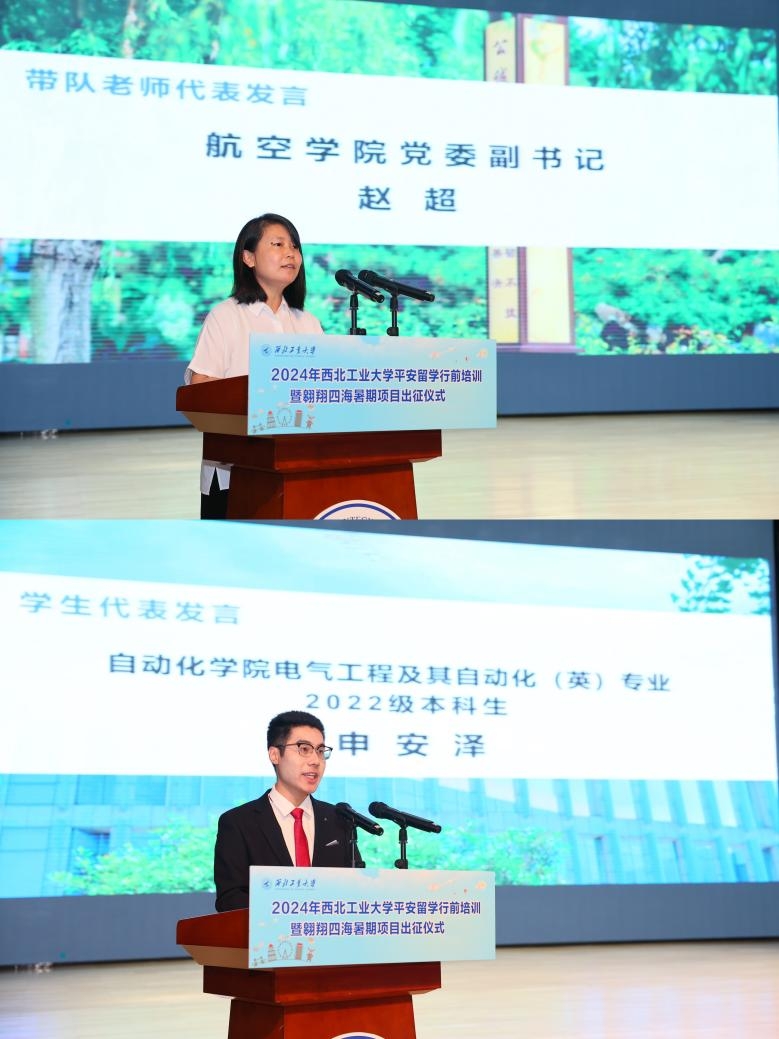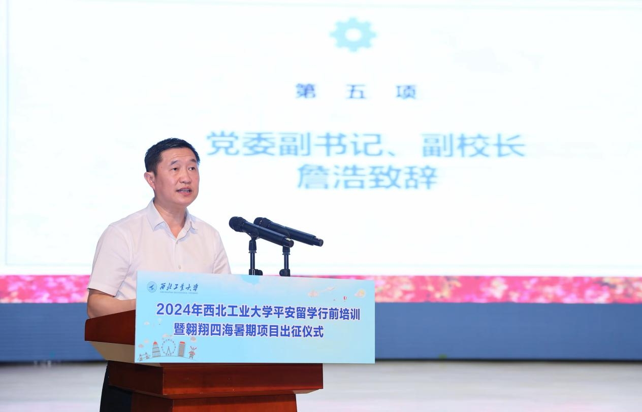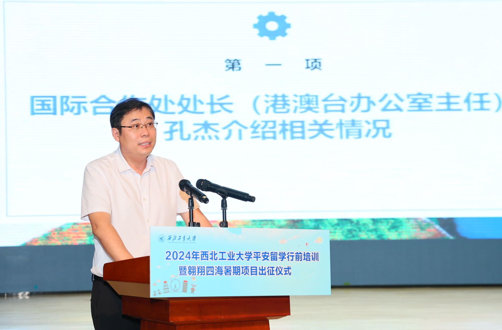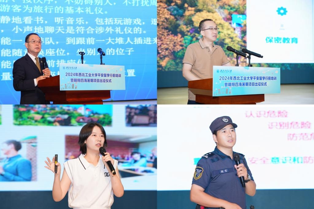 翱翔四海看世界,扬帆五洲逐梦想。在教育部留学服务中心的大力支持下,6月27日下午,2024年西北工业大学“平安留学”行前培训暨“翱翔四海”暑期项目出征仪式在长安校区翱翔学生活动中心举行。鸭脖官网副校长詹浩,陕西省政府外事侨务办公室原党组成员、副主任宫贵俊,西安市公安局教官杨明华,学校党委学工部、党委保卫部、团委、保密处、体育部、国际合作处相关负责同志,各团队带队老师及项目学生参加。
