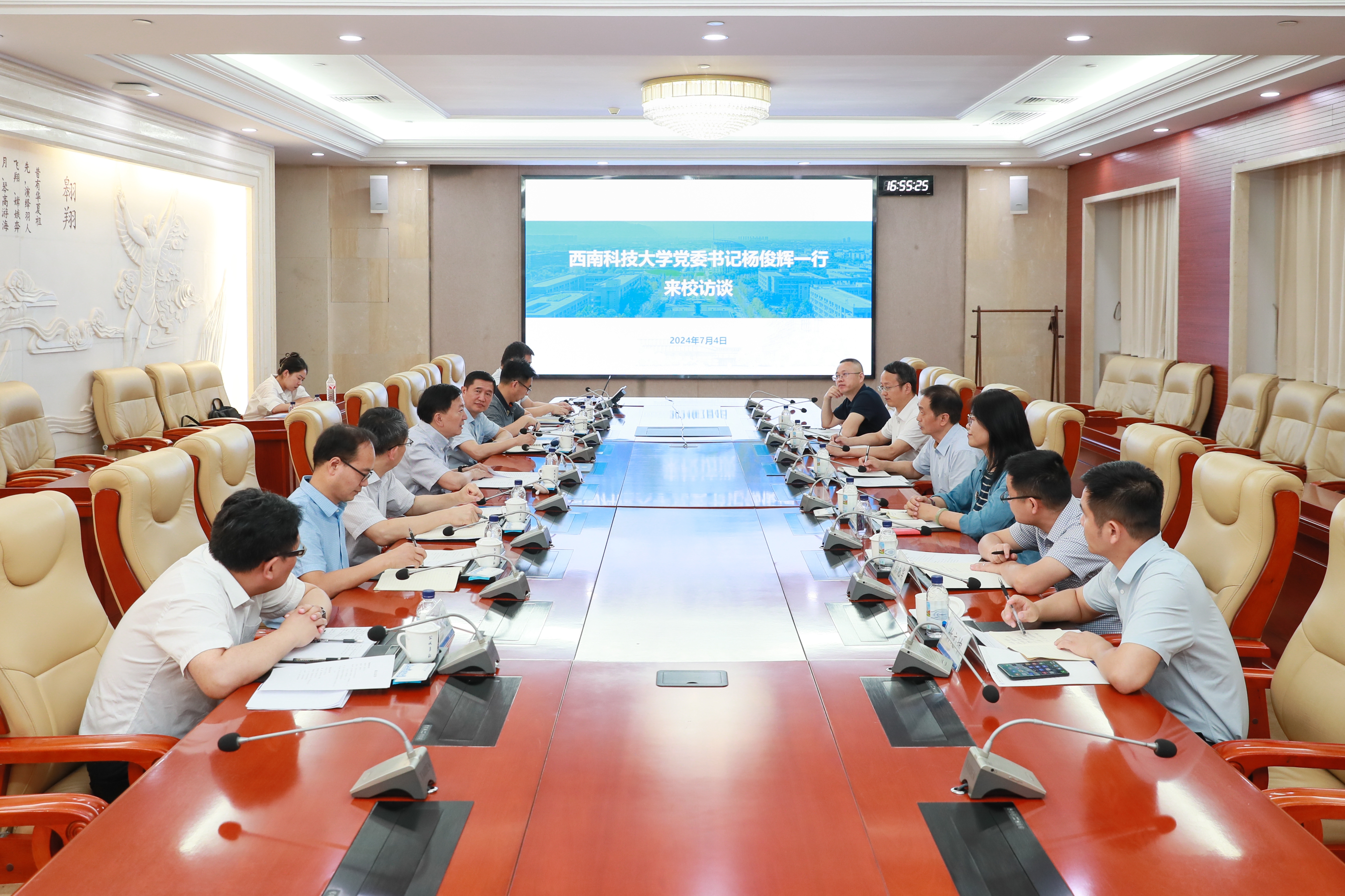 7月4日下午,西南科技大学党委书记杨俊辉,副校长尚丽平一行来校调研。鸭脖官网党委书记李言荣参加座谈交流。座谈会由副校长詹浩主持。