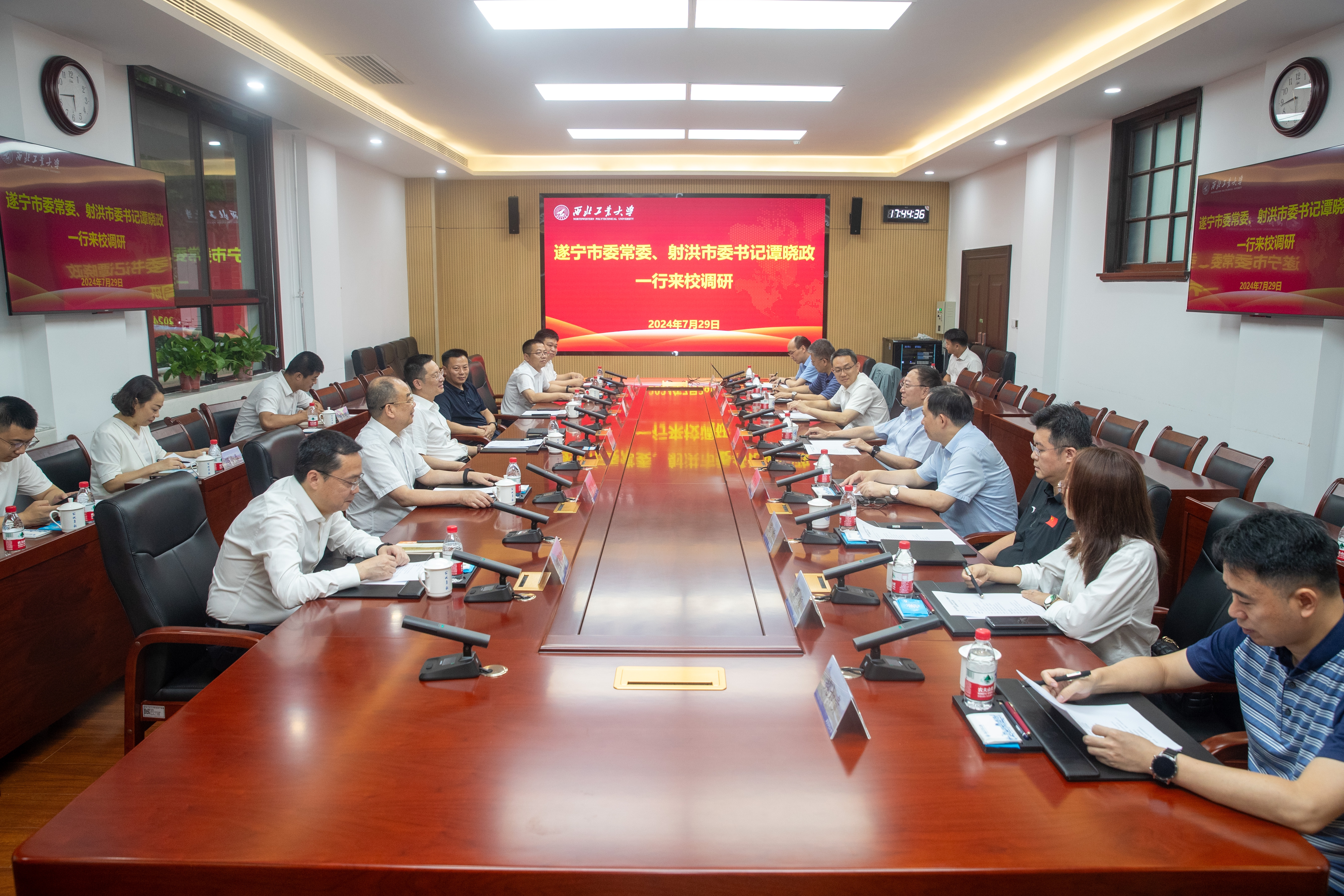 7月29日下午,四川省遂宁市委常委、射洪市委书记谭晓政一行来校调研。鸭脖官网党委书记李言荣会见了谭晓政一行。副校长杨益新参加活动。