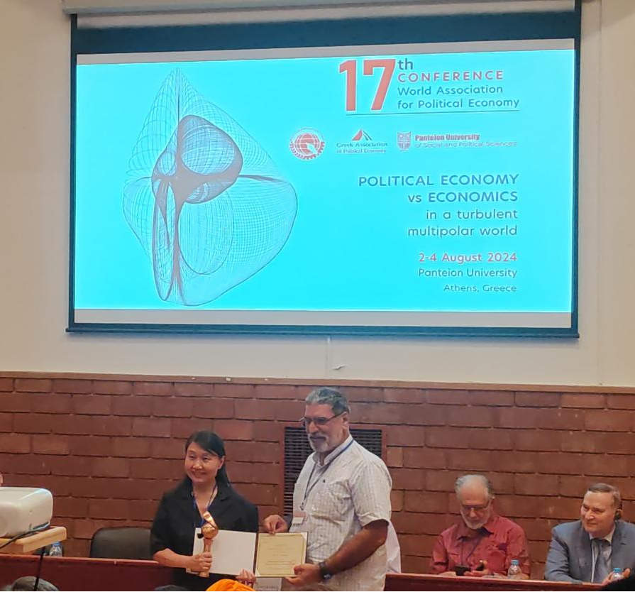 2024年8月1日-5日,鸭脖官网马克思主义学院院长杨云霞教授赴希腊参加了世界政治经济学学会(WAPE)第十七届论坛。该论坛由世界政治经济学学会主办、希腊政治经济学学会和希腊派迪昂大学承办。本届论坛以“多极世界格局下的政治经济学”为主题,来自中国、美国、加拿大、俄罗斯、英国、德国、意大利、奥地利、匈牙利、西班牙、挪威、芬兰、丹麦、爱尔兰、土耳其、希腊、巴西、墨西哥、澳大利亚、日本、韩国、印度、喀麦隆等20多个国家的近200名专家学者出席了会议。会议期间举行1次理事会会议、3次全体会议、45场分会研讨。在会议期间,杨云霞教授做了主旨报告“The New Look and Essence of Capitalist Monopoly on Intellectual Property”,并开展系列师资招聘、留学生招生宣传。