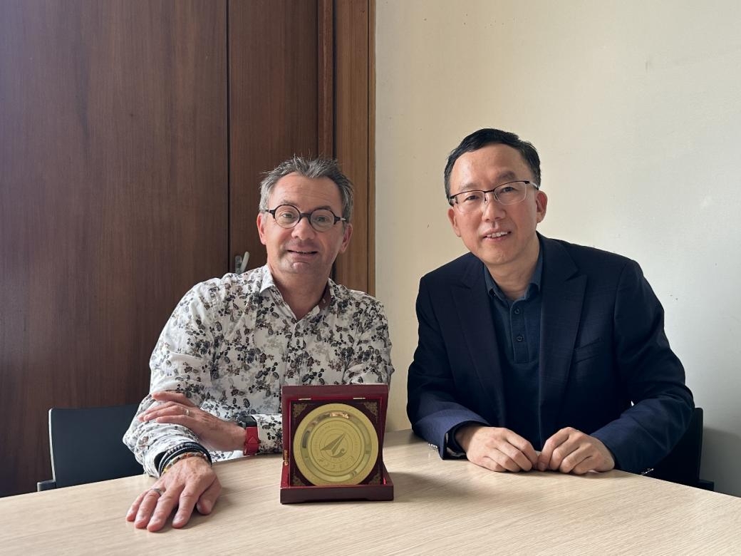 9月24日,代表团一行访问了勃艮第大学,张卫红与负责科研及评估的副校长罗朗·戈蒂埃教授(Laurent Gautier)举行了会谈,对双方科研成果转化等议题展开了讨论。同时国际合作关系负责人费比安·乔治(FabienGeorge)介绍了勃艮第大学的全球合作情况,也期待通过此次会谈与鸭脖官网建立合作伙伴关系,共同推进人才培养方面的合作。双方均表示将致力于推动学术资源共享、联合科研项目申报及教师学生互访交流,共同促进学术繁荣与创新。