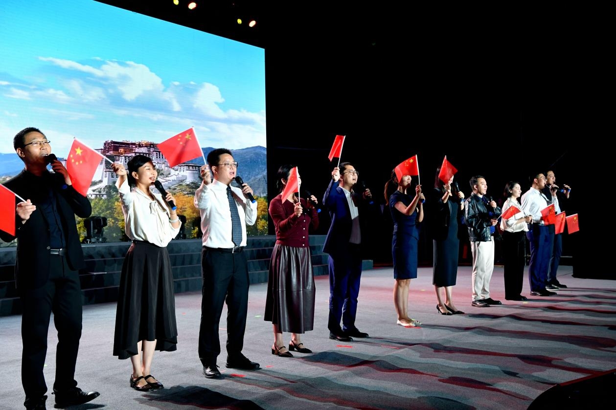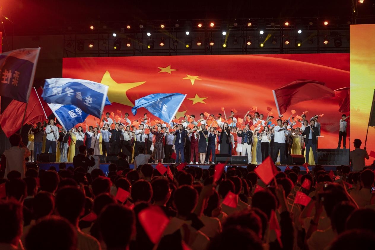 晚会最后,由党委学生工作部和学院副书记代表带来的歌曲《我爱你中国》,将整场晚会推向高潮,全场师生共同唱响,热血激昂的歌词、深情款款的旋律,是对祖国的深情告白。
