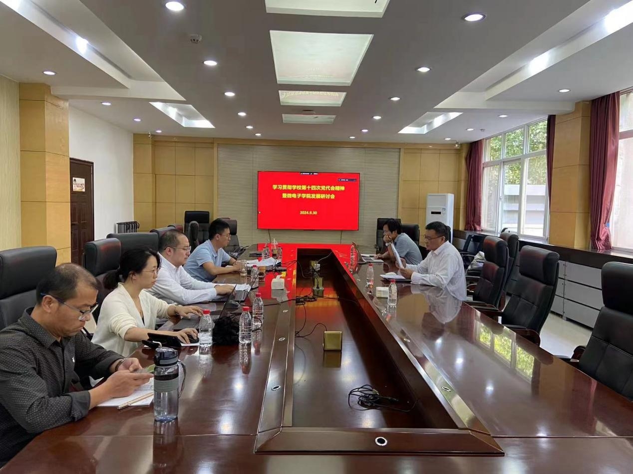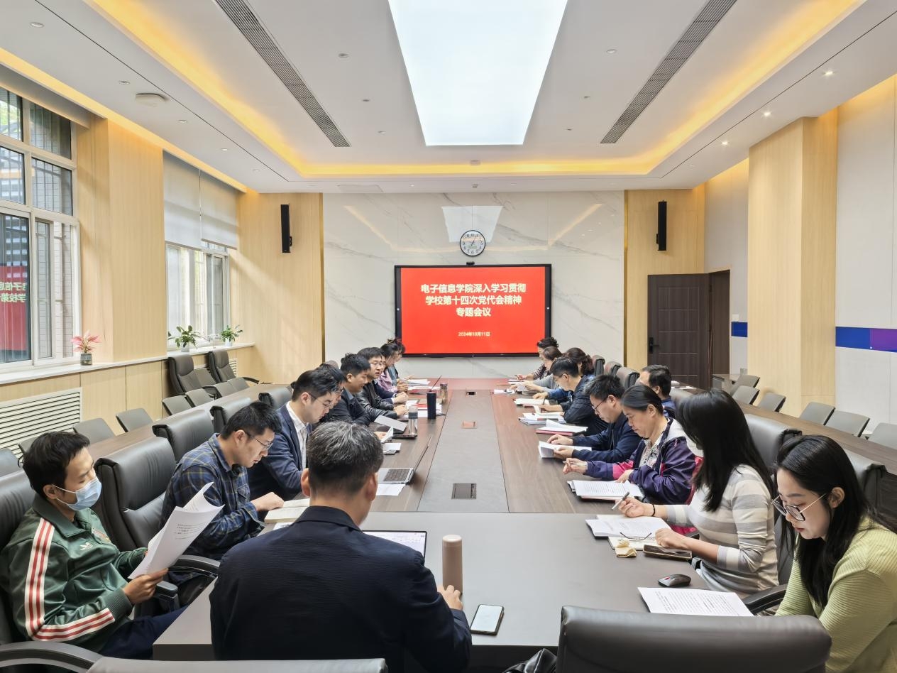 10月11日上午,电子信息学院召开专题会议传达学习学校第十四次党代会精神,研究部署贯彻落实举措。学院班子成员、党委委员、院长助理、教工党支部书记及系(副)主任参加会议,会议由学院党委书记侯俊主持。会上,侯俊带领大家全面学习了李言荣书记在党代会上所作的工作报告,与会人员开展了深入学习研讨。