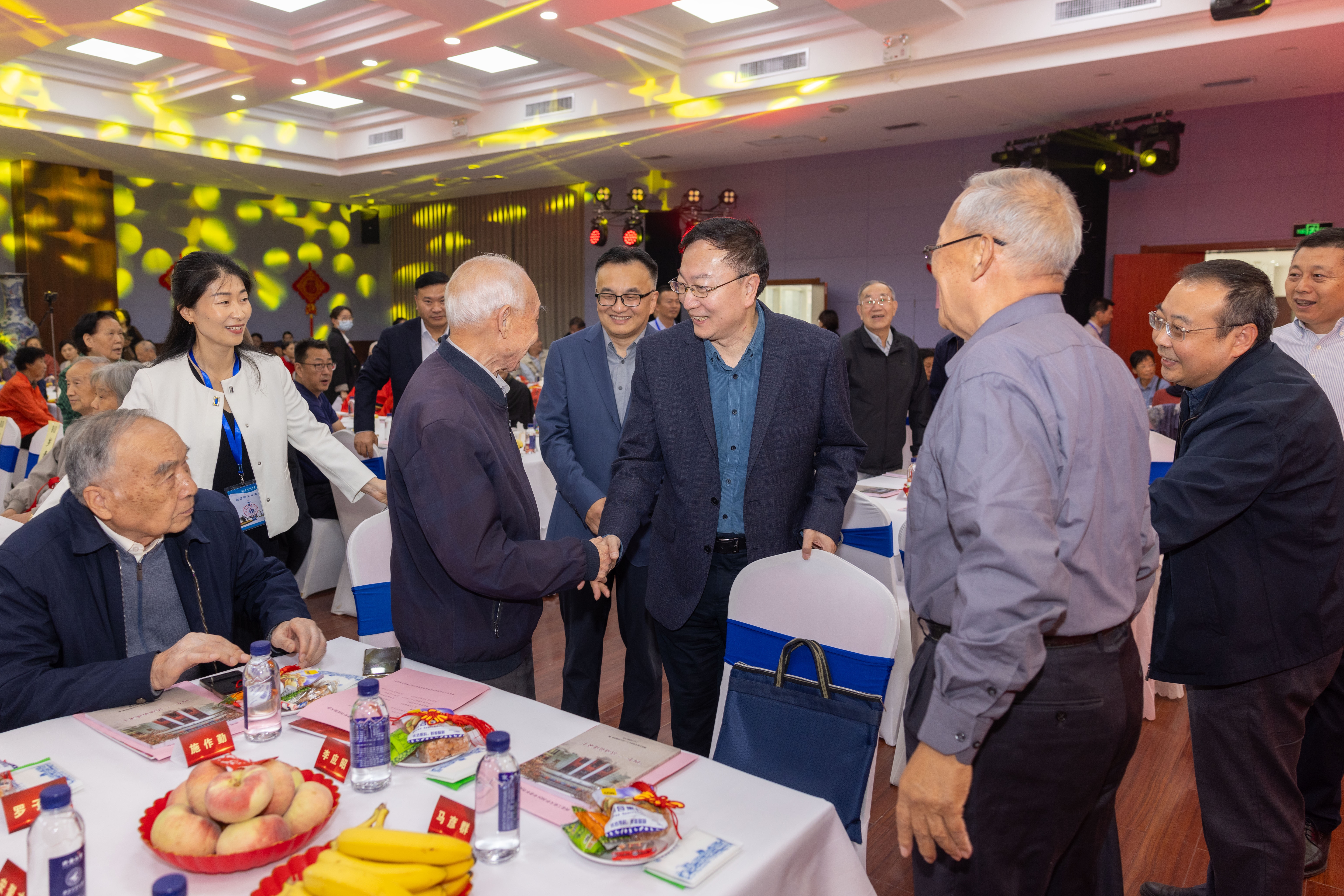 在学校第十四次党代会顺利闭幕之际,10月11日鸭脖官网举行2024年“金秋金桃贺重阳”老年节庆祝大会。学校党委书记李言荣,原党委书记李保义,党委副书记吕卫东,年满90、80、70岁退休教职工代表、金婚夫妇代表等与离退休教职工欢聚一堂,共庆重阳佳节。