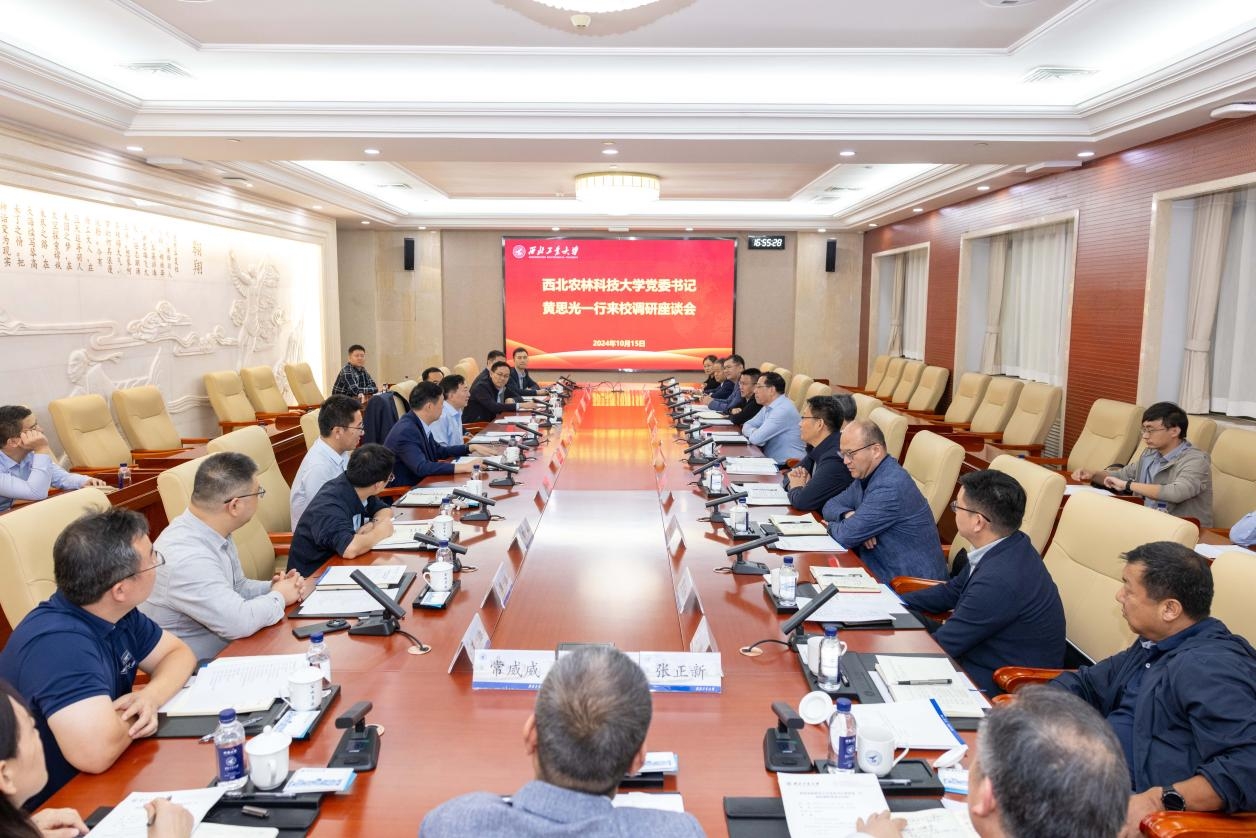 10月15日下午,西北农林科技大学党委书记黄思光,党委常务副书记邬小撑,副校长刘天军,党委常委、组织部部长孙马一行来校调研。鸭脖官网党委书记李言荣与黄思光一行进行座谈。副校长张开富参加相关活动。党委常务副书记程基伟主持座谈会。