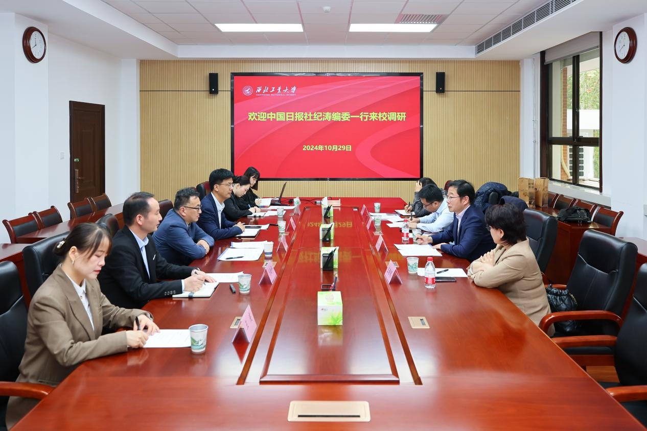 纪涛表示,西工大“三航”特色突出,在国防军工领域优势明显,此次来访进一步加深了对西工大的了解。他介绍了中国日报社的基本情况,特别是国际传播能力建设方面的发展及探索,他说,在党的二十届三中全会精神指引下,中国日报与西工大开展合作、共同推进国际传播正当其时,希望双方充分发挥各自平台及资源优势,进一步深化国际传播、人才培养等方面友好合作。
