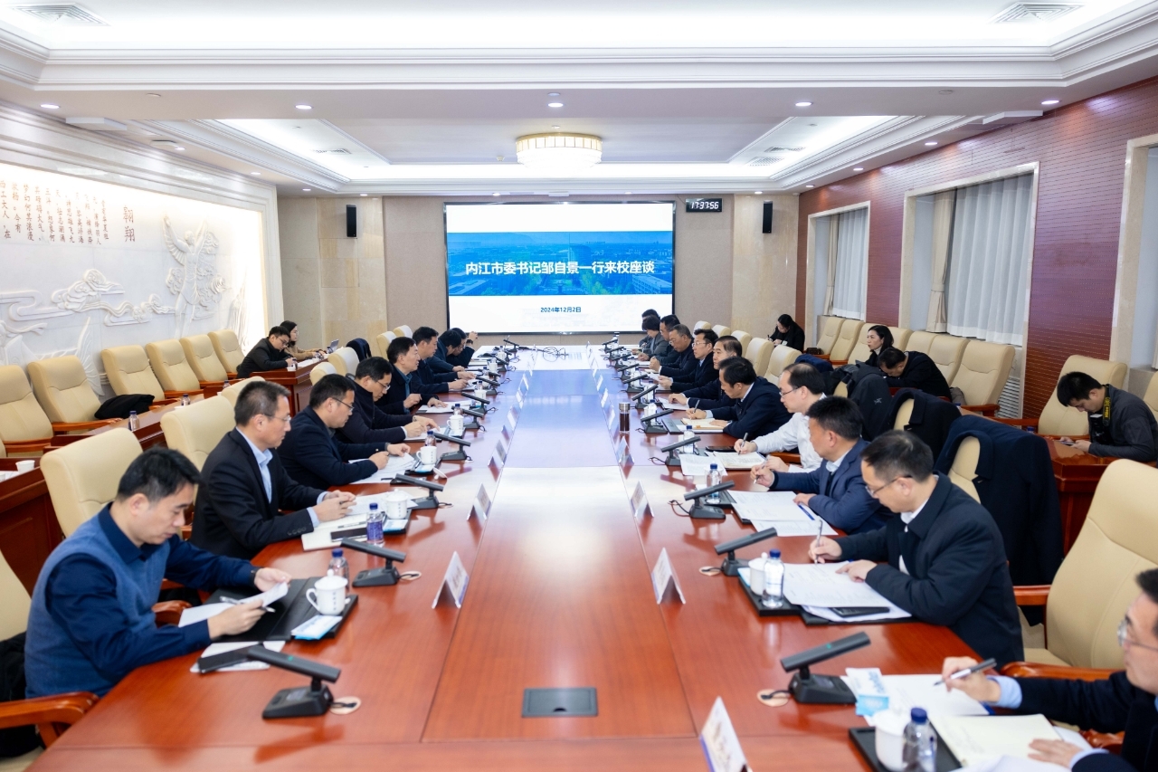 12月2日下午,内江市委书记邹自景一行来校调研。鸭脖官网党委书记李言荣参加座谈交流。内江市委常委、组织部部长向赟,副市长毕胜参加调研。座谈会由副校长张开富主持。