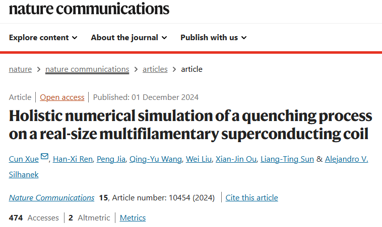 近日,力学与土木建筑学院薛存副教授团队在高场超导磁体磁-热不稳定性研究方面取得重要进展。相关研究成果以题为“Holistic numerical simulation of a quenching process on a real-size multifilamentary superconducting coil”的论文形式发表在《Nature Communications》(自然•通讯),薛存副教授为该论文的第一作者和通讯作者。