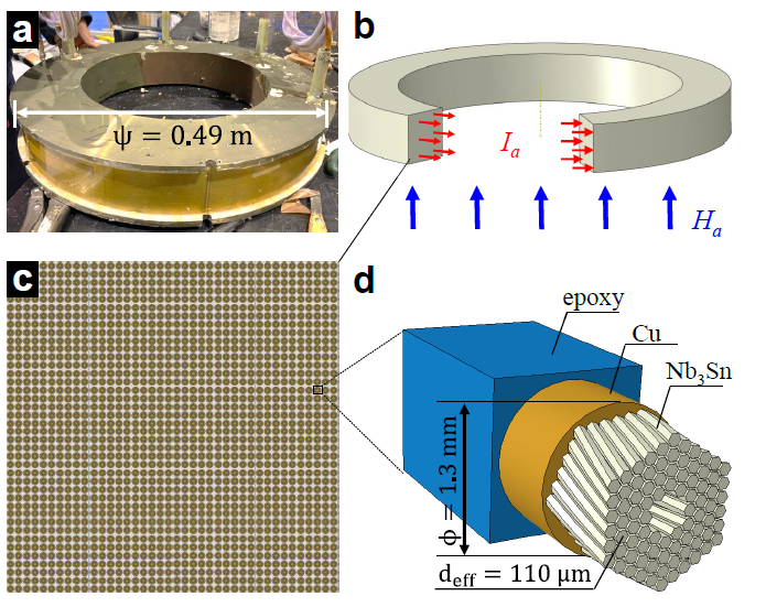 超导线圈是高场磁体的关键核心部件,在高能物理、先进医疗、磁约束核聚变等方面有重要应用。然而国内外在研制高场Nb3Sn磁体励磁过程中,遇到大量磁通跳跃,这种磁热不稳定性导致超导载流能力急速下降,容易诱发过早失超,严重影响超导磁体的安全可靠运行。另外,超导线圈在强磁场、大电流环境下受到强电磁力作用,Nb3Sn超导电磁性能对力学变形很敏感,因此力学作用下Nb3Sn线圈磁-热不稳定性成为研制高场Nb3Sn磁体亟待解决的难题之一。