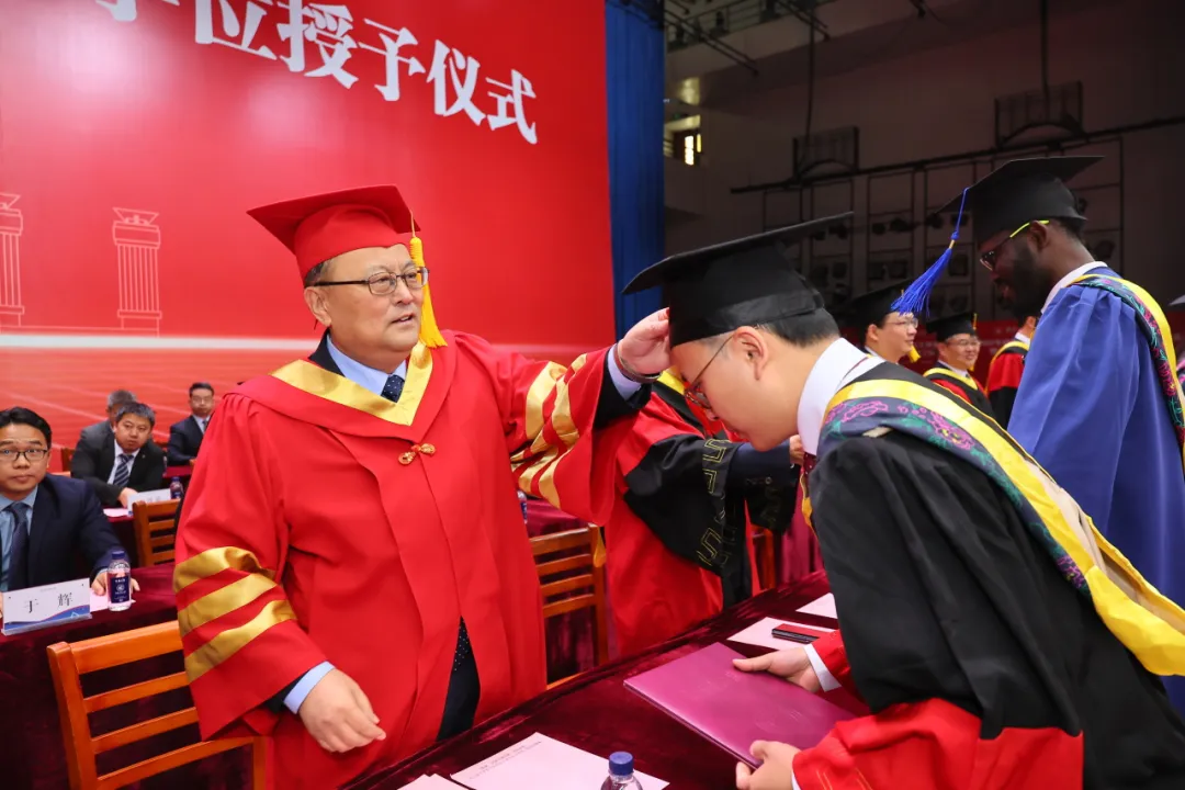 为你拨穗正冠,盼你踏浪扬帆。校领导、院士、杰出校友、导师代表为毕业生代表们一一拨穗、颁发毕业证书并合影留念。