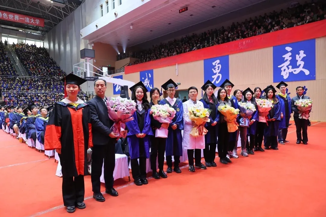时光流转,师恩难忘。在数年的学习生活里,每一次进步、每一点突破都有师长们的朝夕相伴、无私付出。在现场,还特别邀请到了一些师长代表,他们是:导师代表孙浩、辅导员代表许茜、图书馆管理员代表郭晴、校医院医生代表赵强、餐厅员工代表王维、校车驾驶员代表罗伟红、物业宿管代表党红侠、保卫部队员代表刘禹杨,毕业生代表们为师长们献花,深情感恩师长们在学习、科研、生活中的培养与关爱。
