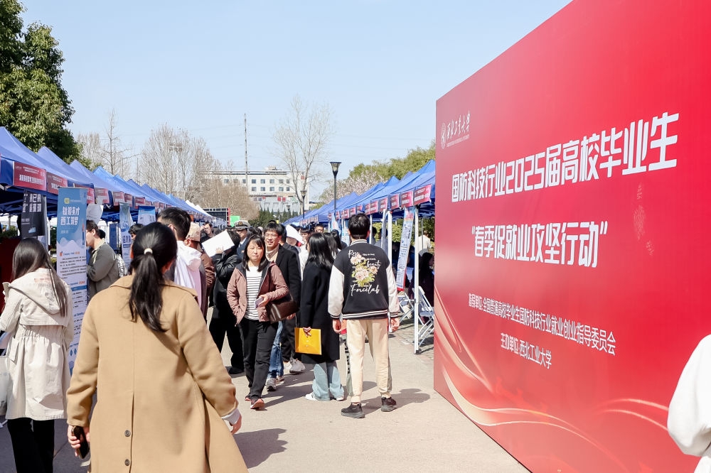 3月20日,在西北工业大学举办的招聘会现场,设置国防科技行业专区。