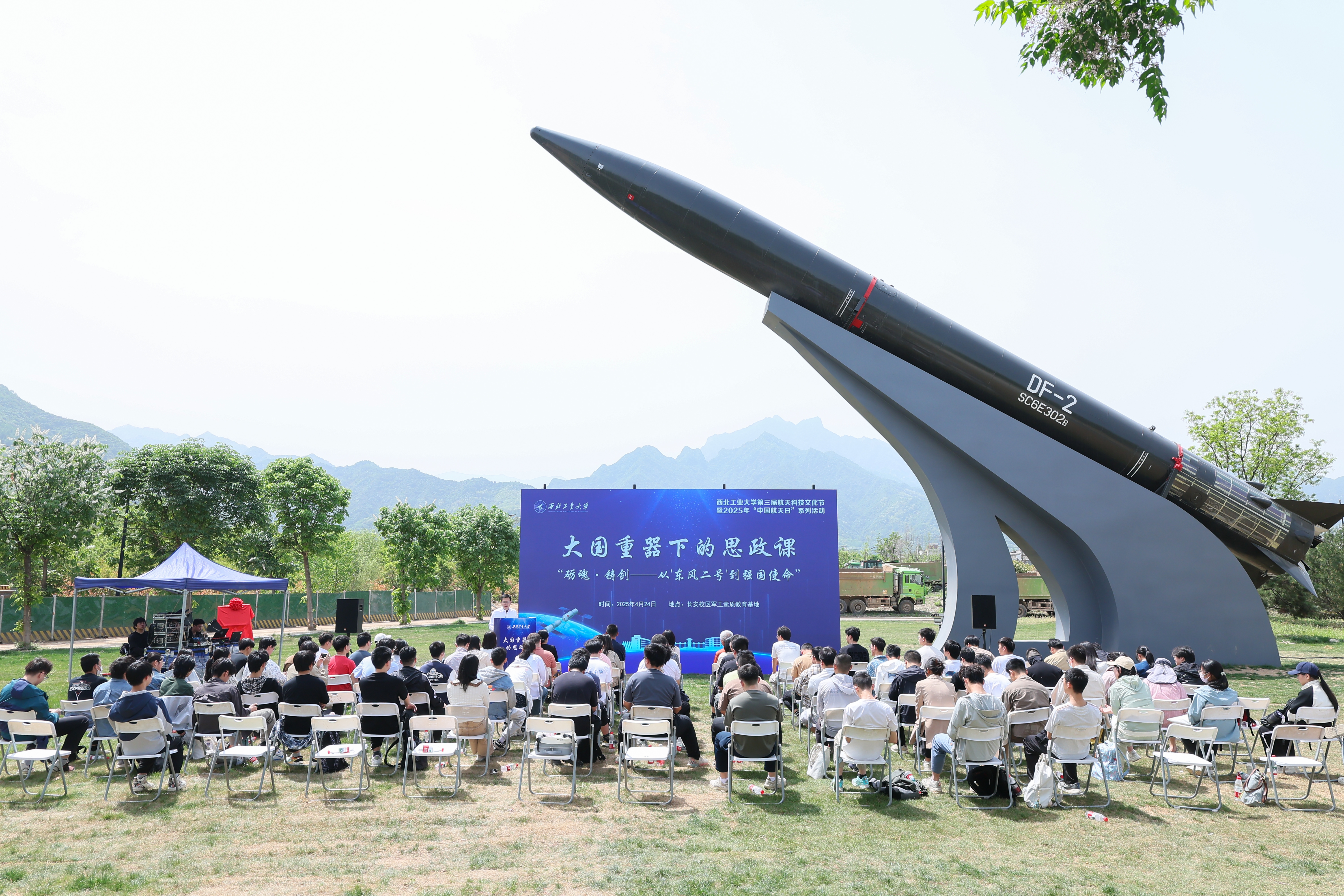 4月24日,航天学院在长安校区军工素质教育基地举办“大国重器下的思政课”主题活动。活动以校园内陈列的“东风二号”导弹实物为课堂载体,通过“触摸历史、精神传承、强国担当、青春誓言”四大篇章,联动航天专家校友、思政教师与青年学子,构建了一堂跨越时空的沉浸式思政课。航天一院专家王欣、学校相关领导、马克思主义学院教师及航天学院师生代表百余人参与此次活动。