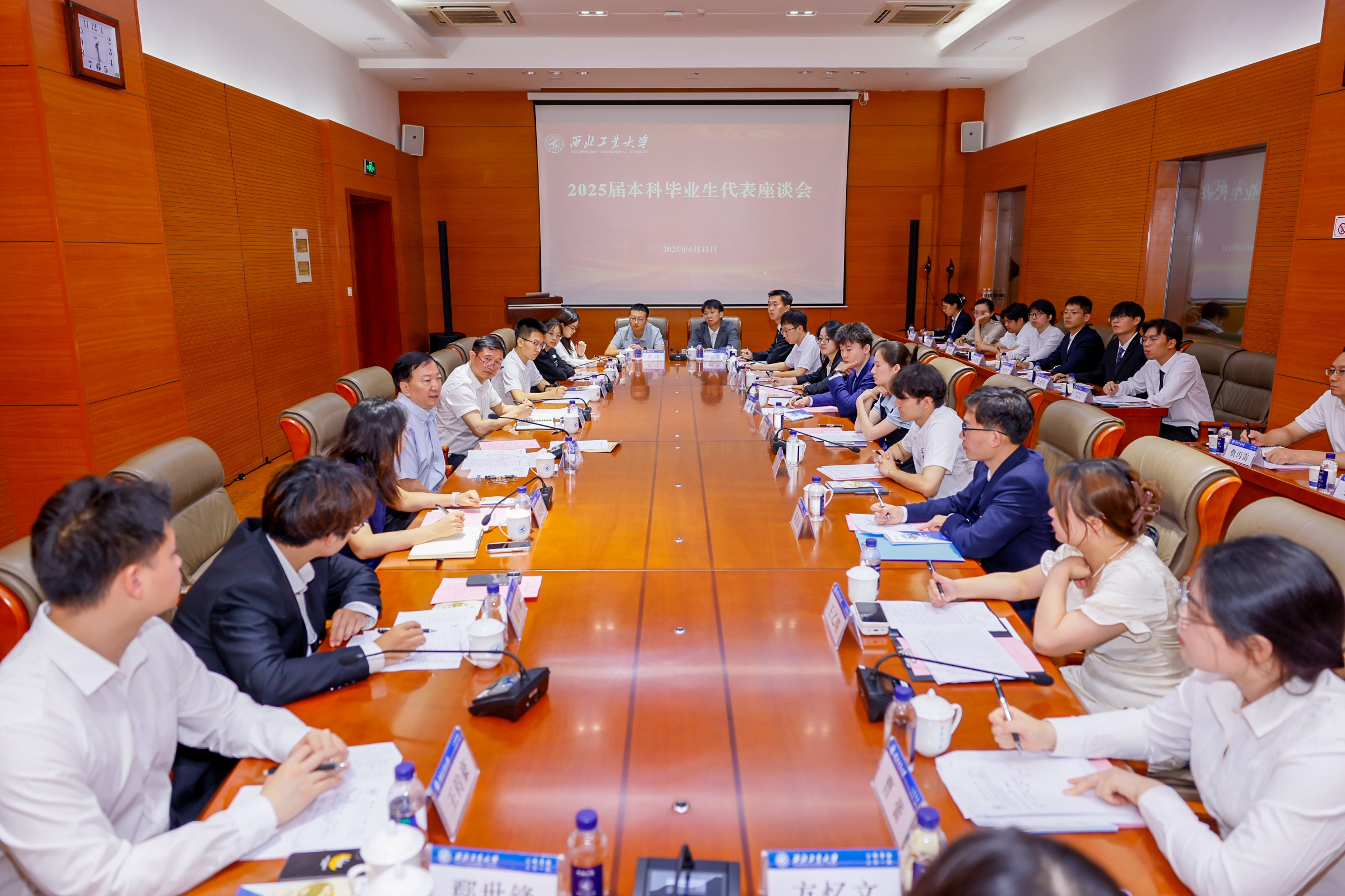 6月11日下午,鸭脖官网2025届本科毕业生代表座谈会在长安校区召开。党委书记李言荣与26名本科毕业生代表座谈交流。副校长詹浩主持座谈会。