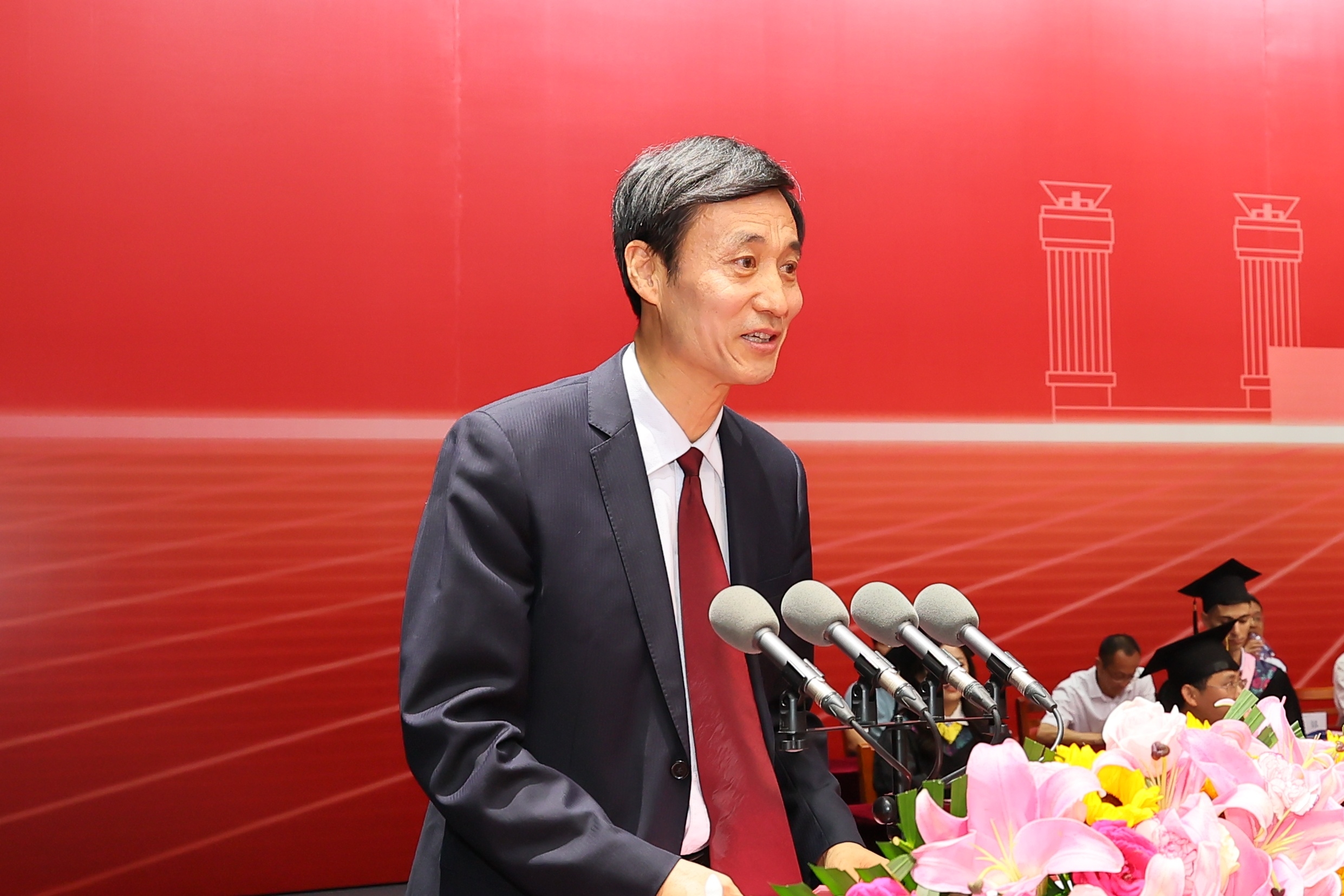 宋保维代表全校师生员工、代表李言荣书记,向同学们表示诚挚的祝贺!向含辛茹苦养育同学们的父母、辛勤培育同学们的老师致以崇高的敬意和衷心的感谢!他说,近年来,学校坚持以“总师育人文化”引领人才培养,从担纲大国重器的总师校友身上,回溯出“低调务实、兼收并蓄,厚积薄发、为国铸剑”的特质内涵,打造出聚焦“专业精、系统强、重实践、能担当”基本素养的课程体系、教材体系、实践体系,铸牢“总师型”人才的思想根基,提升各种素质能力,同学们身上打上了鲜明的西工大精神和气质烙印。