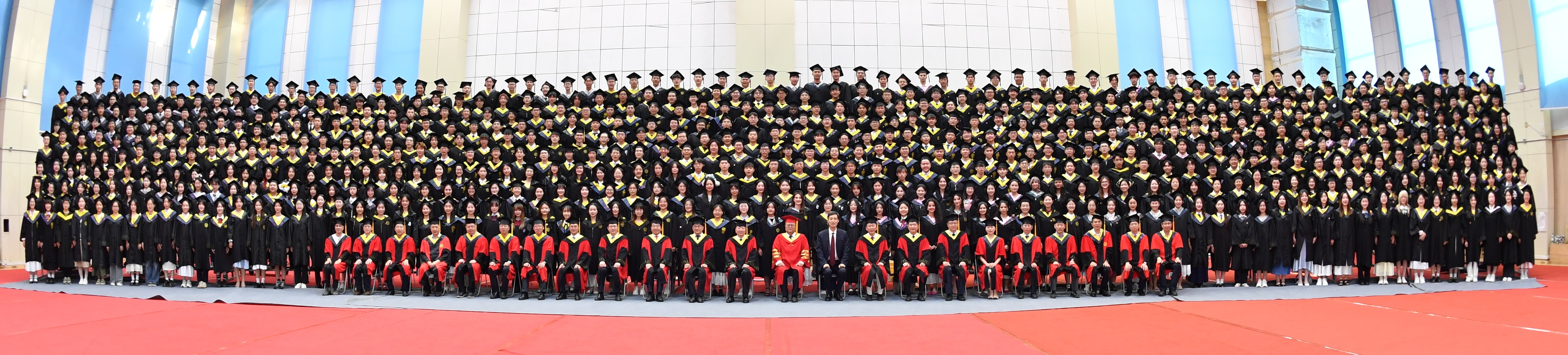 典礼开始前,校领导,院士代表,校友代表,校学位评定委员会委员与全体优秀毕业生合影留念。