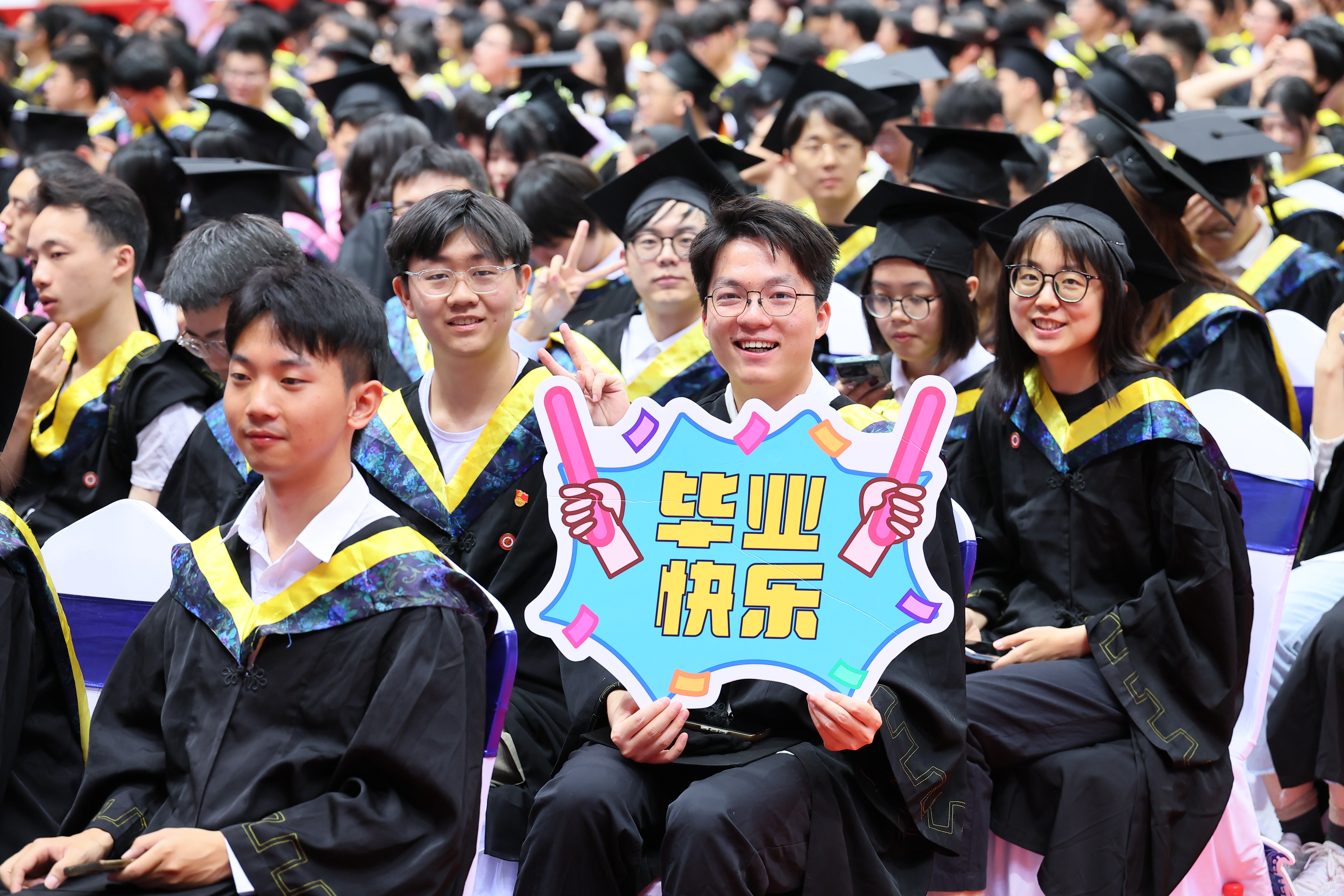 典礼上,毕业生代表还与大学生艺术团、教授合唱团、青年教师代表一起联唱了《再见》《等风来》《祖国不会忘记》等歌曲。现场还播放了2025届本科生毕业MV《跃向新山海》、毕业纪念视频《闪亮的青春》。