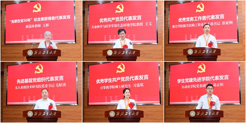 会上,“光荣在党50年”纪念章获得者代表、陕西省教学名师、银发宣讲员王彬,优秀共产党员代表、生命科学与医学学部生态环境学院教授王文,优秀党务工作者代表、航空学院航空结构工程系党支部书记郭亚洲,先进基层党组织代表、无人系统技术研究院党委书记毛昭勇,优秀学生共产党员代表、计算机学院硕士研究生习嘉琪,学生党建先进学院代表、自动化学院党委副书记易正阳依次作交流发言。