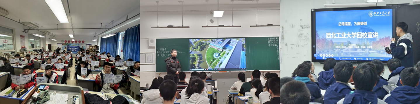 2025年“学生大使”回访母校活动吸引到5300余名在校学生报名参与。“学生大使”们通过微信公众号宣传、海报预热、线上宣讲、报告厅讲座、面对面答疑等多种方式,向中学母校充分展示了西工大的校园环境、师资力量和科研成果等方面,让更多的学生了解到西工大的办学特色和优势。