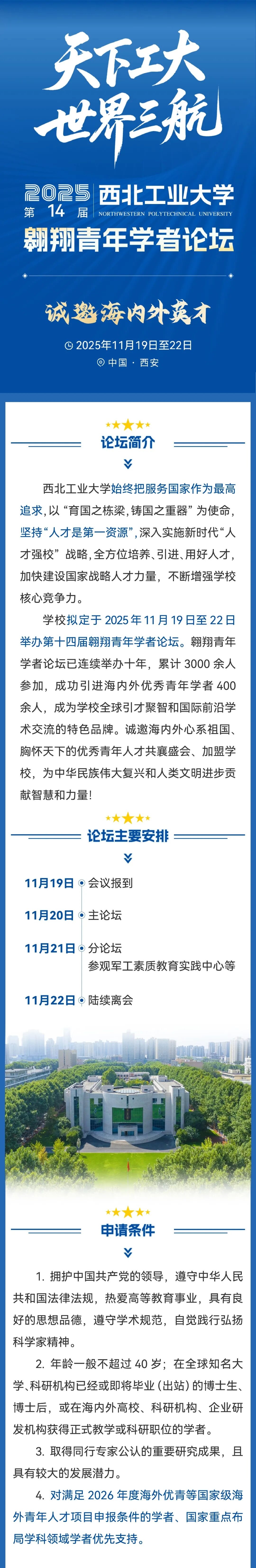 西工大2025翱翔青年学者论坛诚邀全球英才参加