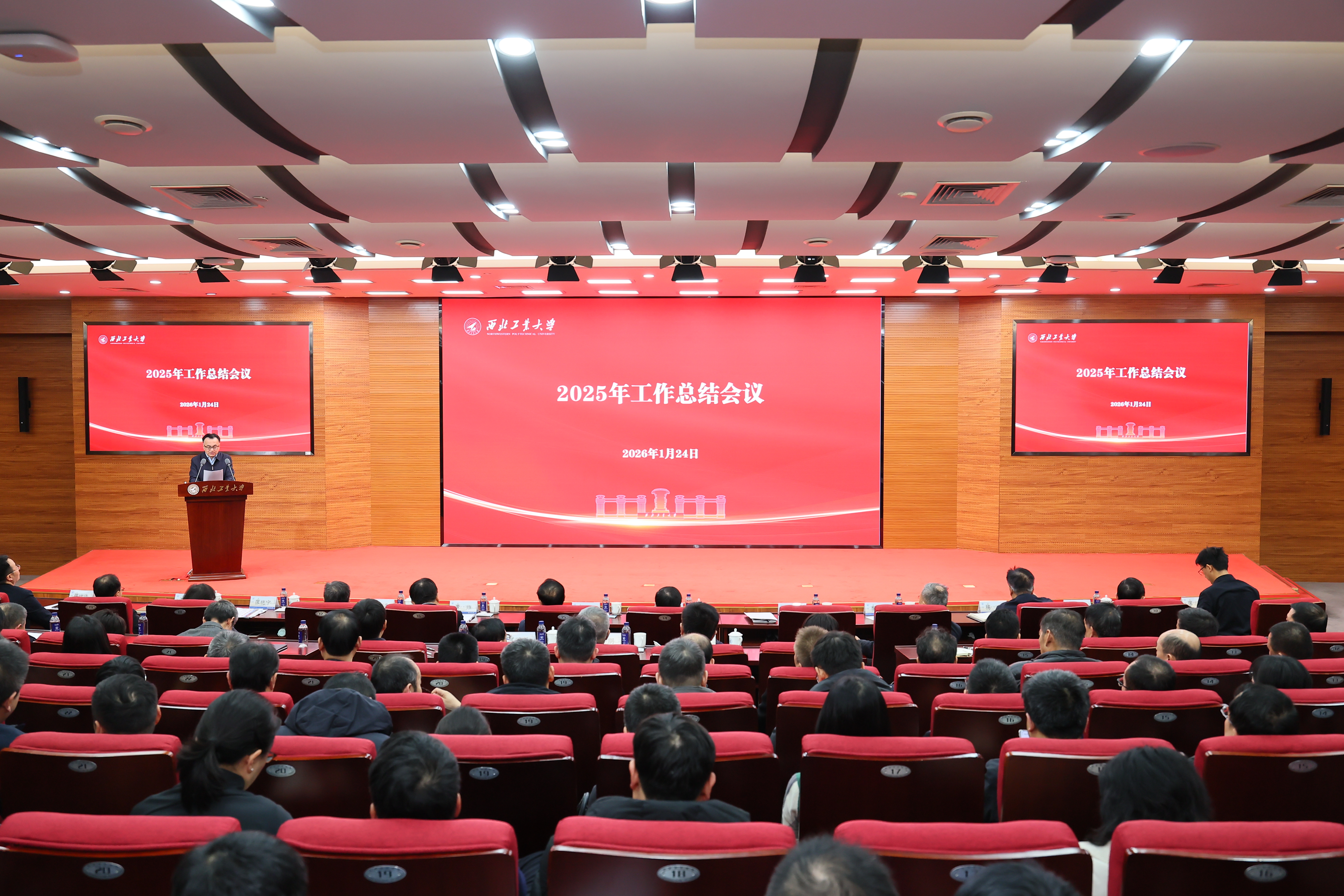 1月24日,西北工业大学2025年工作总结会议在友谊校区召开。校党委书记李言荣出席会议并讲话,校长宋保维作2025年学校工作总结。全体校领导,校学术委员会主任黄维院士、副主任李贺军院士,杨坤德院士,校务委员会副主任万小朋、何国强,全校中层干部参加会议。会议由党委常务副书记吕卫东主持。