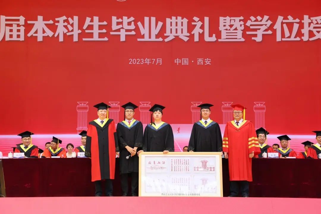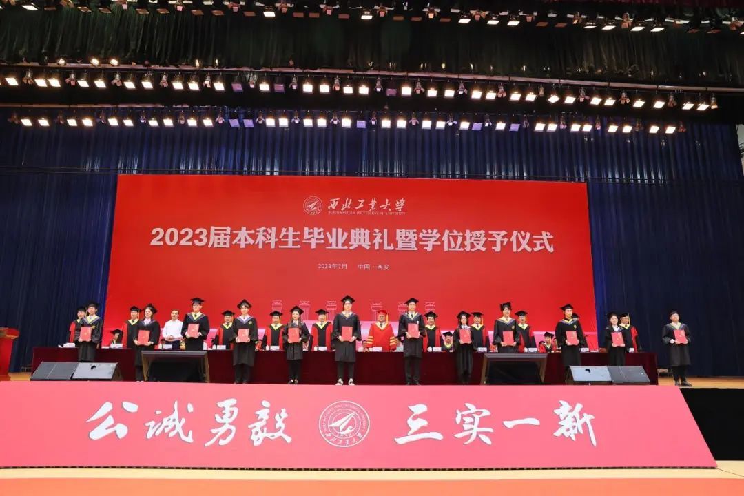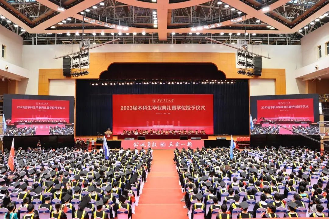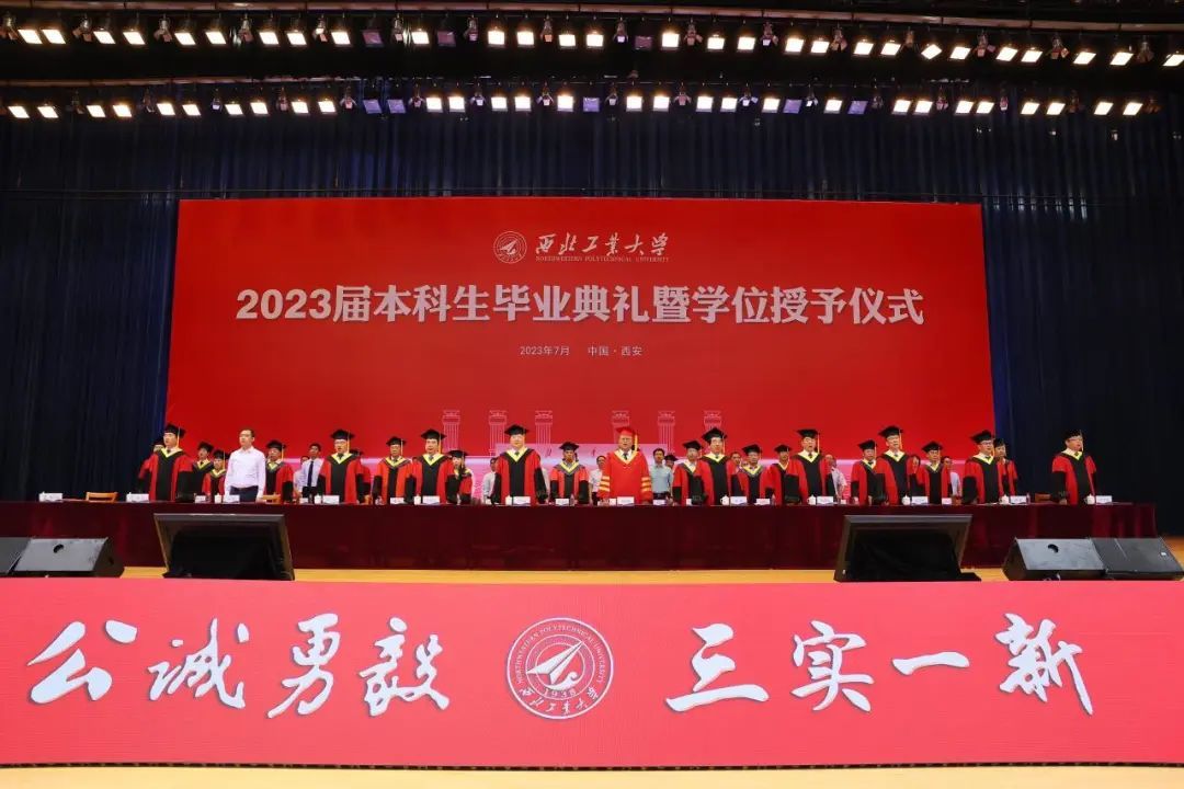 西工大新闻网7月7日电(文字 潘子祺 张文静 摄影 郭友军 卢迪 王乐宇)7月6日上午,西北工业大学2023届本科生毕业典礼暨学位授予仪式在长安校区翱翔体育馆隆重举行。4592名本科生圆满完成学业,被授予学士学位(其中普通高等教育学士学位3635人,成人高等教育学士学位957人),挥别母校,自此向崭新的未来启程。