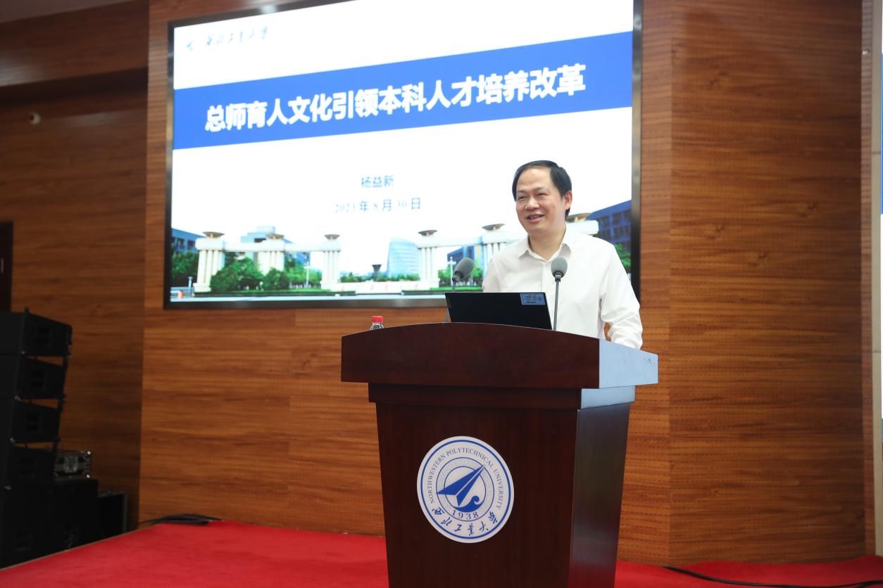 杨益新阐述了“总师育人文化”引领本科人才培养改革的思路和举措,要不断完善“总师”型人才培养路径,建立西工大特色“总师”型人才培养体系,持续培养专业精、系统强、重实践、能担当的“总师”型人才。