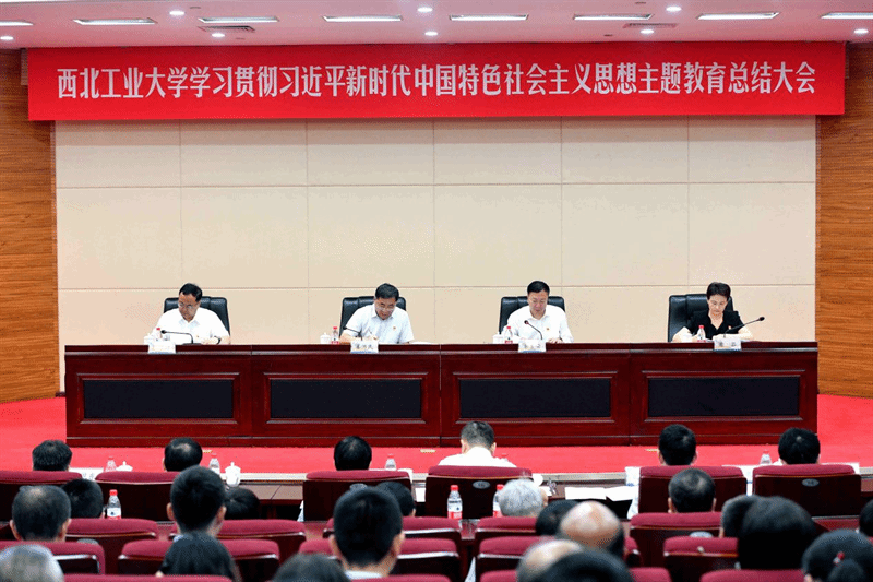 李言荣代表学校党委对学校主题教育开展情况进行总结。他表示,主题教育启动以来,学校党委认真把主题教育谋划好、组织好、落实好,各级党组织和全体党员、领导干部扎实开展各项工作,圆满完成了主题教育的目标任务。一是坚持“重谋划”与“明责任”相结合,确保组织领导传压力、增效力。加强组织领导,落实主体责任;加强督促指导,提升工作质量;加强宣传引导,营造浓厚氛围,在全校掀起主题教育热潮。二是坚持“学思想”与“悟原理”相结合,增强理论学习的系统性、实效性。科学安排系统学、深入学、跟进学,以上率下示范学,集中研讨深入学,加强指导全员学,突出特色创新学,丰富形式引领学。三是坚持“走出去”与“沉下去”相结合,深入调查研究找问题、寻对策。强化系统布局,精心选题,围绕发展所需、改革所急、师生所盼的突出问题,推动调查研究取得实效;务实开展调研,同心答题,开展“解剖式”“协同式”“沉下去”“督查式”调研;凝聚全校共识,用心破题,将调研成果转化为促进发展的实际行动。四是坚持“促发展”与“解民忧”相结合,切实推动发展出实招、求实效。实干笃行,推动学校各项事业高质量发展,“跳出学校看西工大、立足全局看西工大、着眼长远看西工大”;以人为本,切实解决师生“急难愁盼”问题,用看得见的变化回应广大师生的关切和期盼。五是坚持“当下改”与“长久立”相结合,确保检视整改抓到位、抓彻底。动真碰硬,扎实推进整改整治;建章立制,巩固深化工作成效,把“解决一件事”升级为“规范一类事”;深查细照,开好专题民主生活会。
