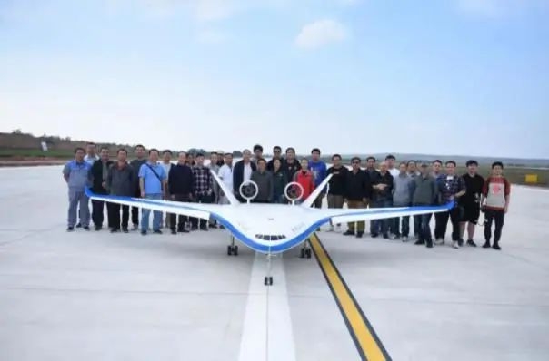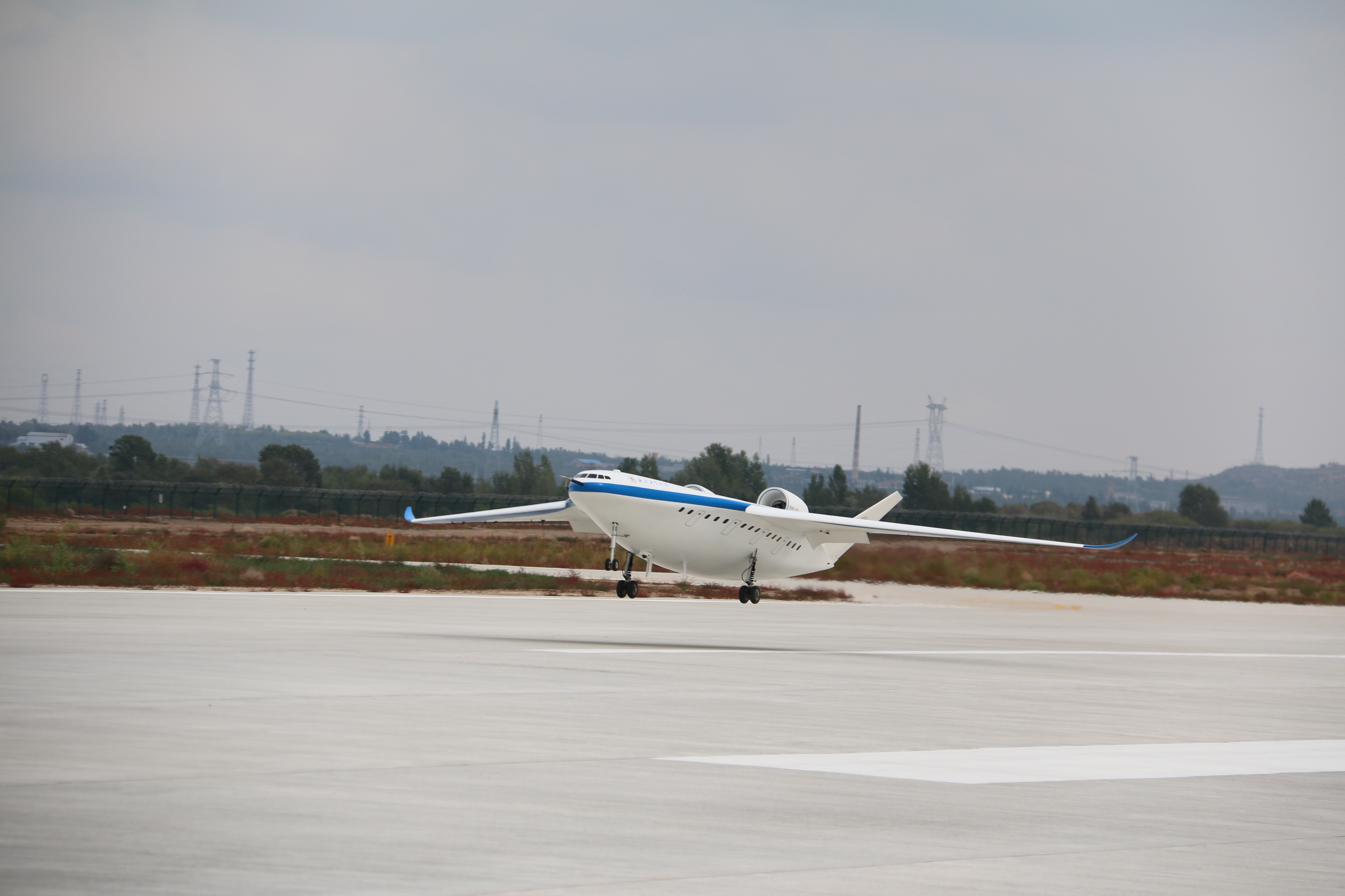 鸭脖官网研制的翼身融合大型客机的缩比试验机在靖边通用机场试飞成功