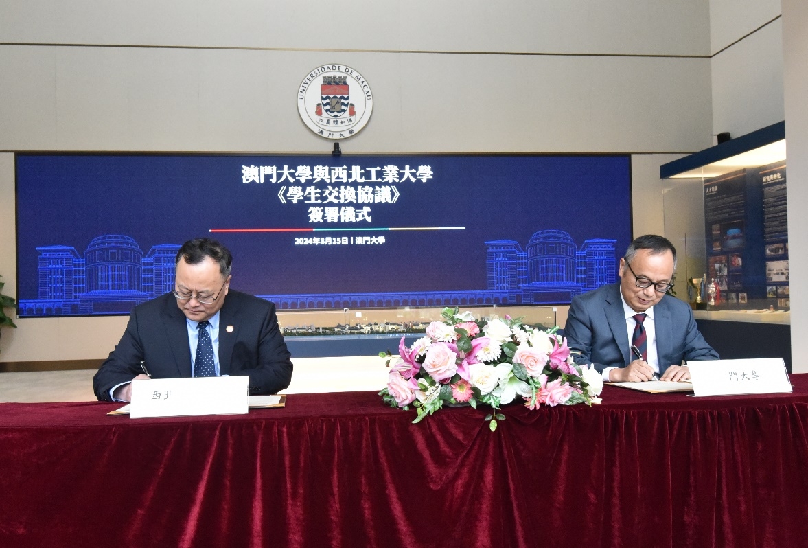 在澳门大学,宋保维与宋永华校长会谈、共同签署了《西北工业大学与澳门大学学生交流协议》,进一步推动两校学生交流互访以及高水平战略合作。