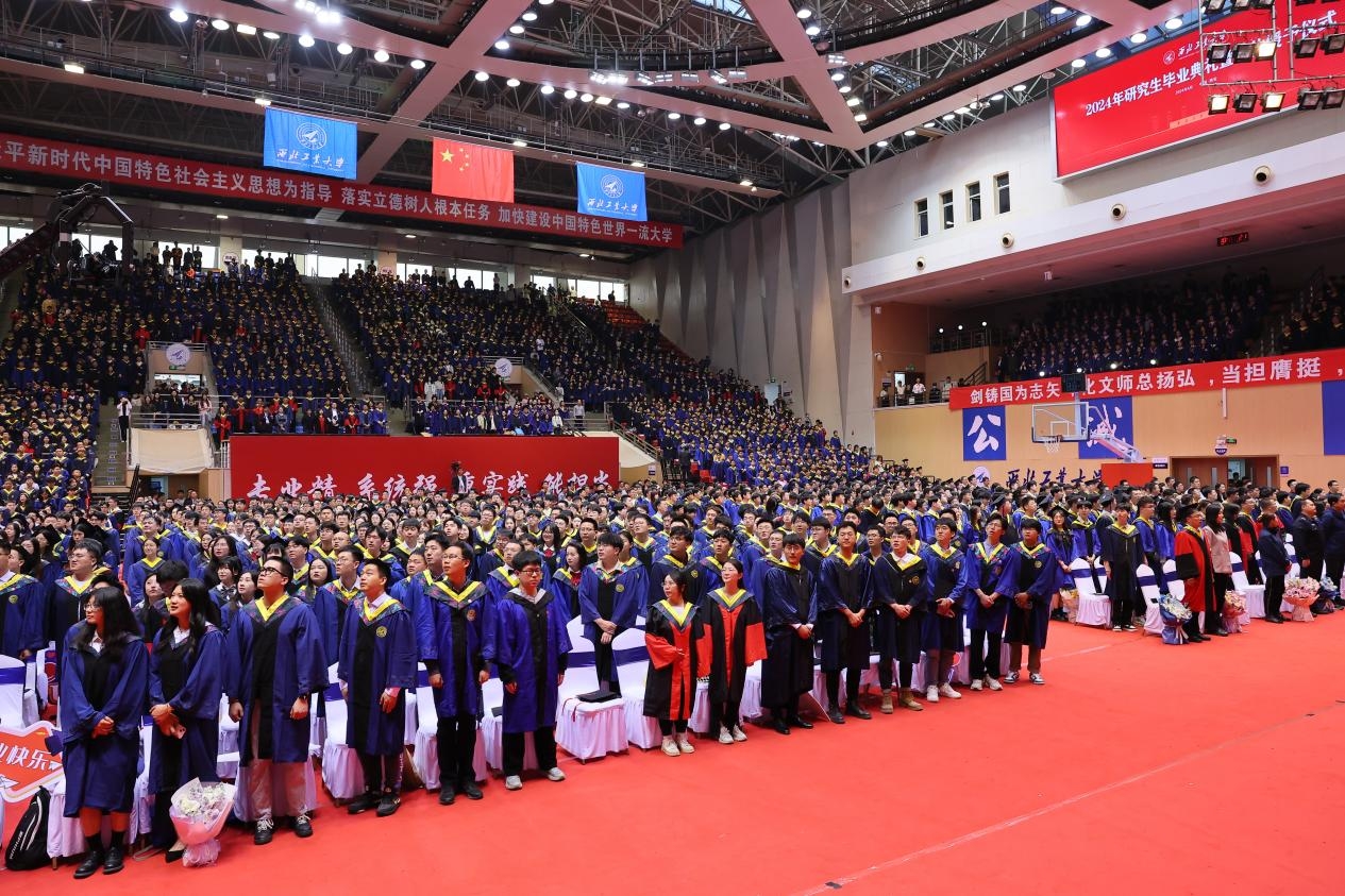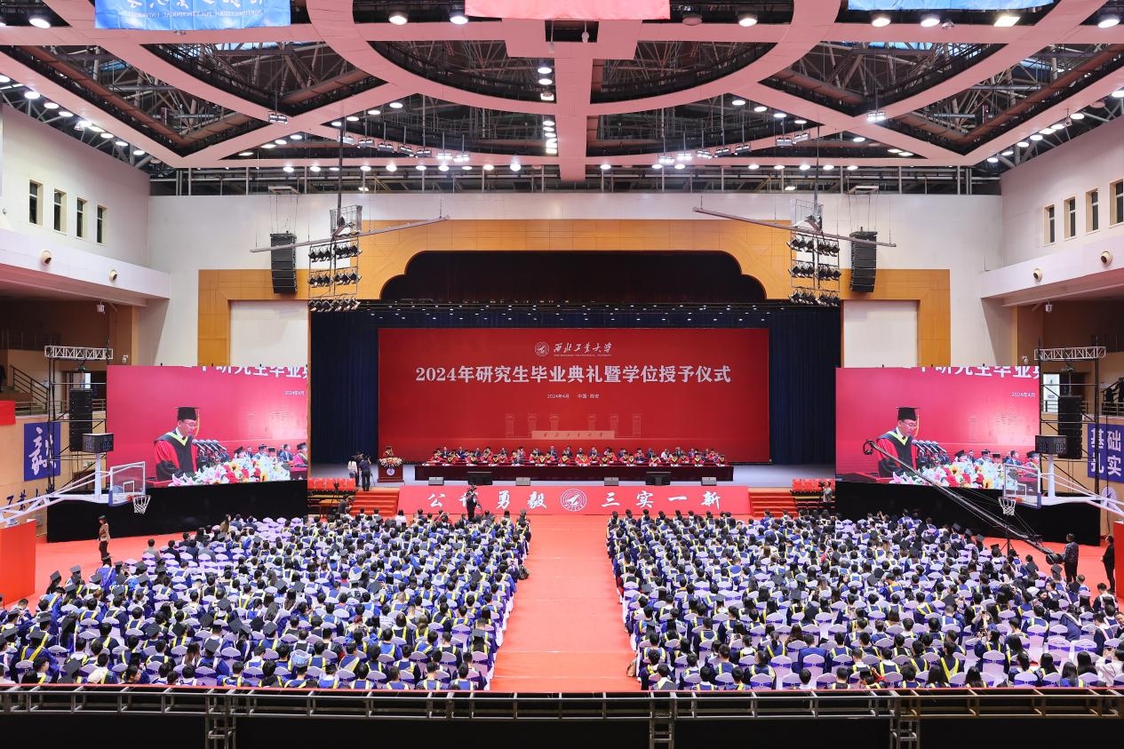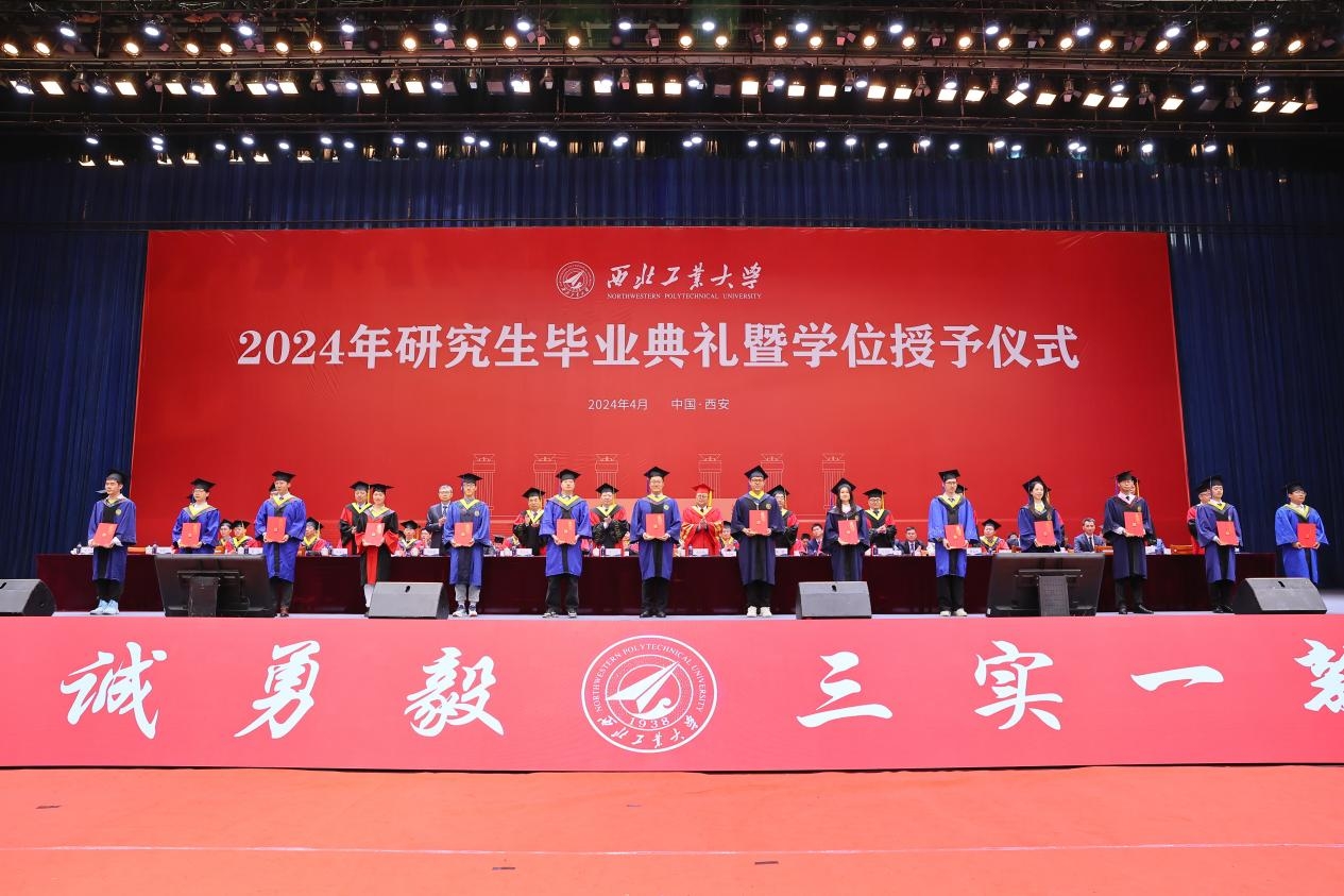 4月1日上午,西北工业大学2024年研究生毕业典礼暨学位授予仪式在长安校区翱翔体育馆举行。4913名硕士研究生、706名博士研究生圆满完成学业,在师长亲友的共同见证下,自此远行,开启人生新的征程。