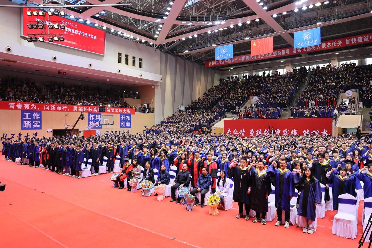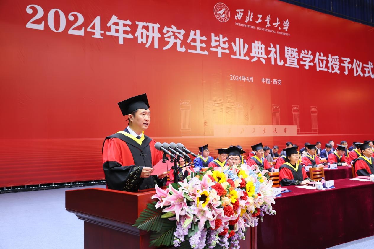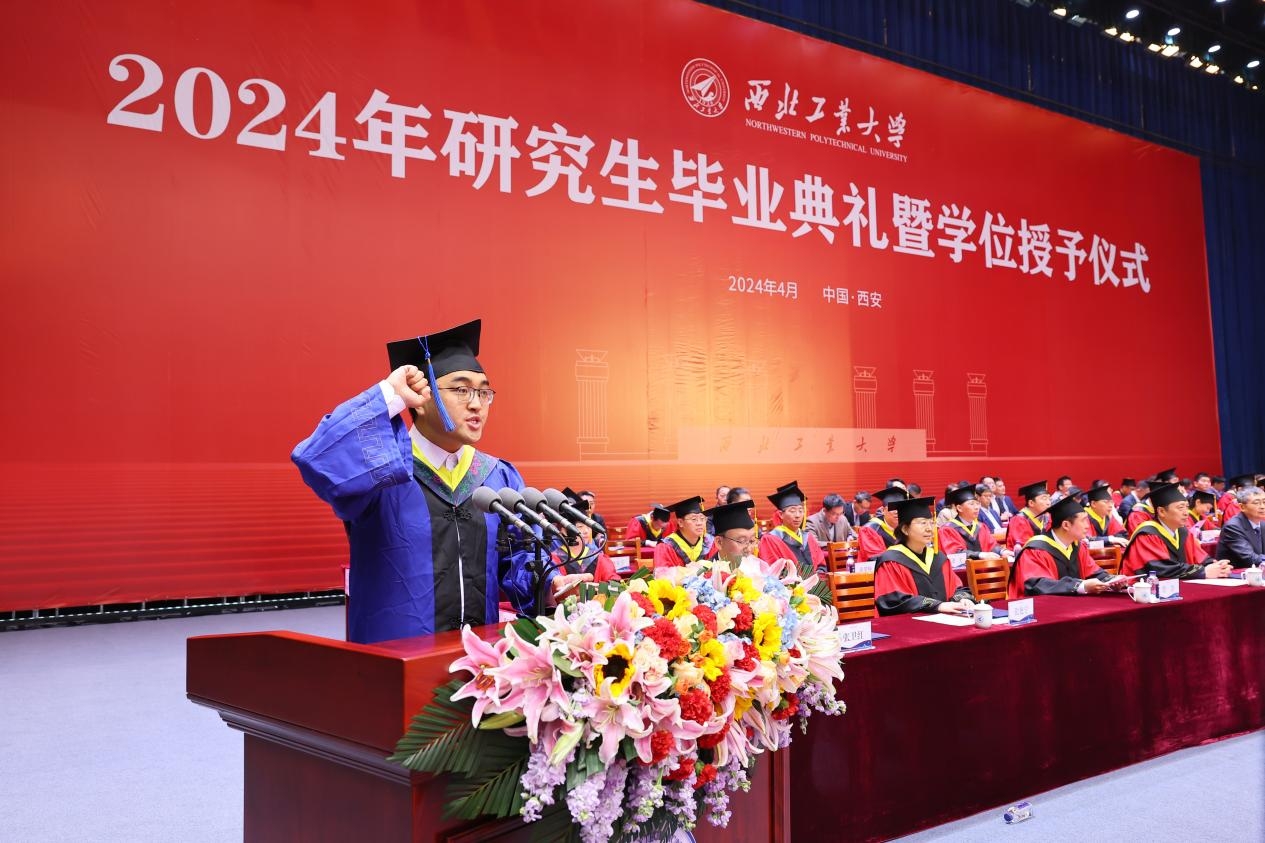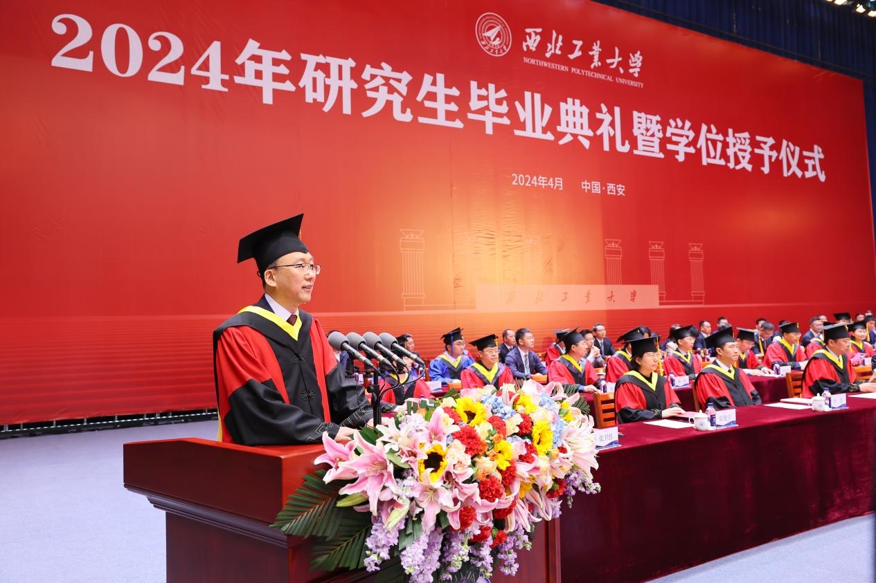 4月1日上午,西北工业大学2024年研究生毕业典礼暨学位授予仪式在长安校区翱翔体育馆举行。4913名硕士研究生、706名博士研究生圆满完成学业,在师长亲友的共同见证下,自此远行,开启人生新的征程。