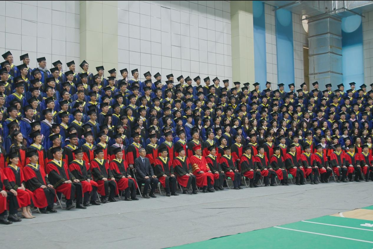 典礼开始前,校领导,院士代表,校友代表,校学位评定委员会委员与全体优秀毕业生合影留念。