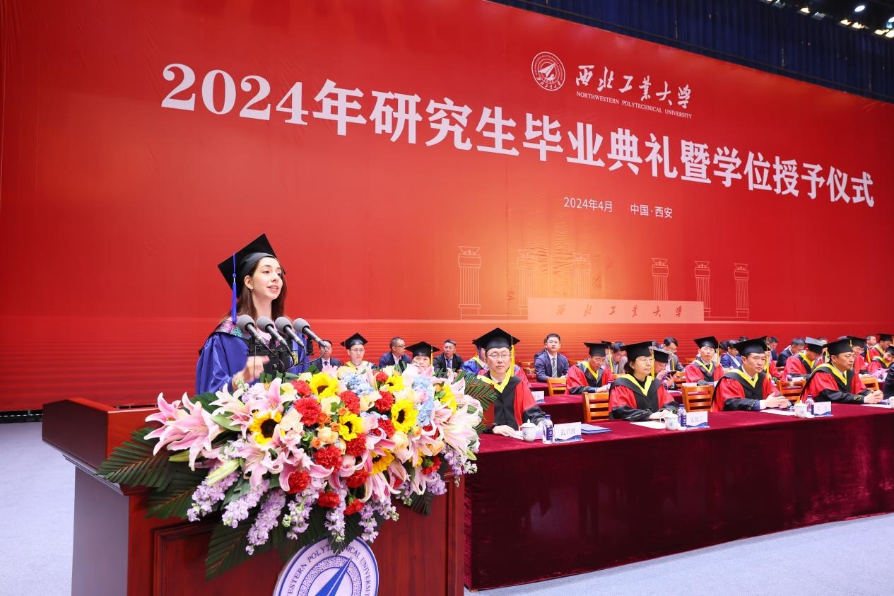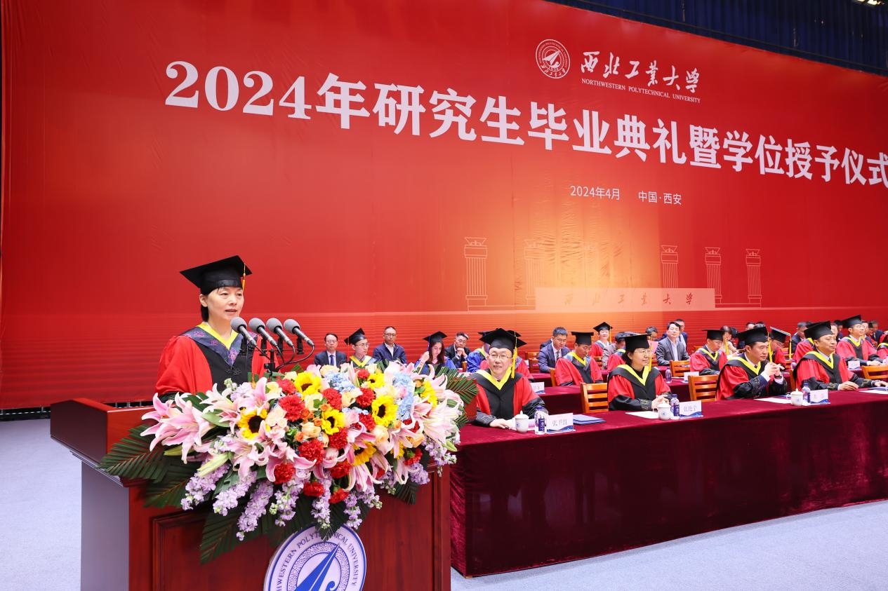 研究生导师代表、计算机学院尚学群说,相信西工大赋予了大家自我选择的底气和“为国铸剑”的家国情怀。希望大家无论身处何处,都能够不负韶华,保持激情与纯粹,不随波逐流,不断自我突破,保持努力奔跑;都能够怀揣炽热的爱国情怀和强烈的使命感,用自己的智慧和汗水,用心雕琢每一把“剑”。她还叮嘱大家要管理好自己的健康,“野蛮自己的体魄”,以充沛的精力,为国家的繁荣富强而努力奋斗。