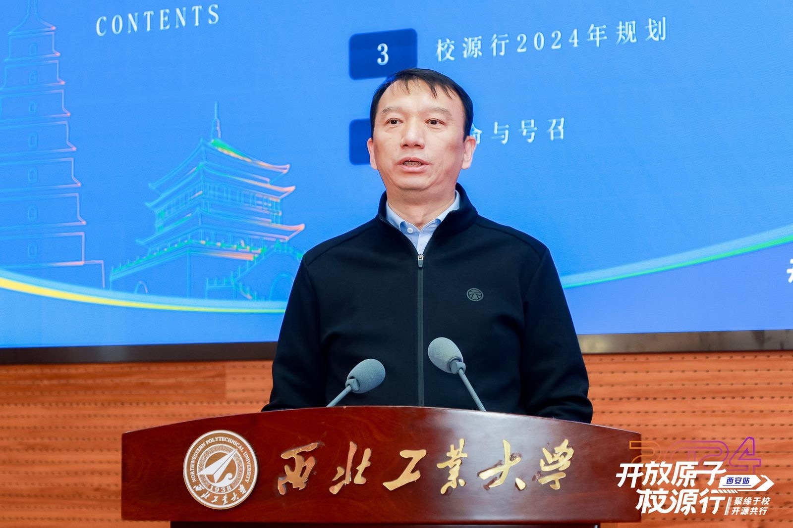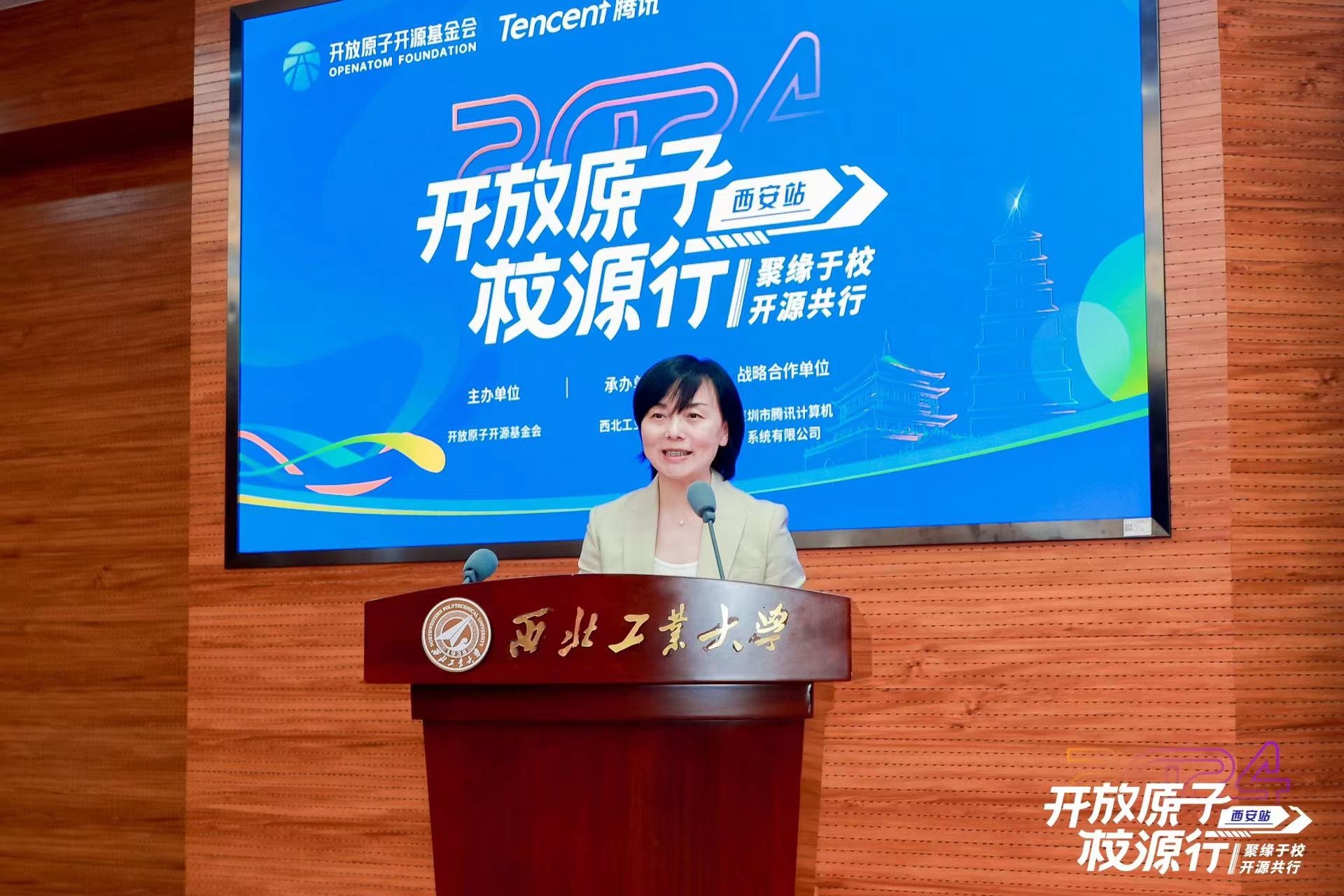 本次活动由开放原子开源基金会主办,西北工业大学承办,深圳市腾讯计算机系统有限公司提供战略合作支持。校源行各大签约高校代表、200多名西北工业大学学生及相关企业、开源项目负责人等参加活动。