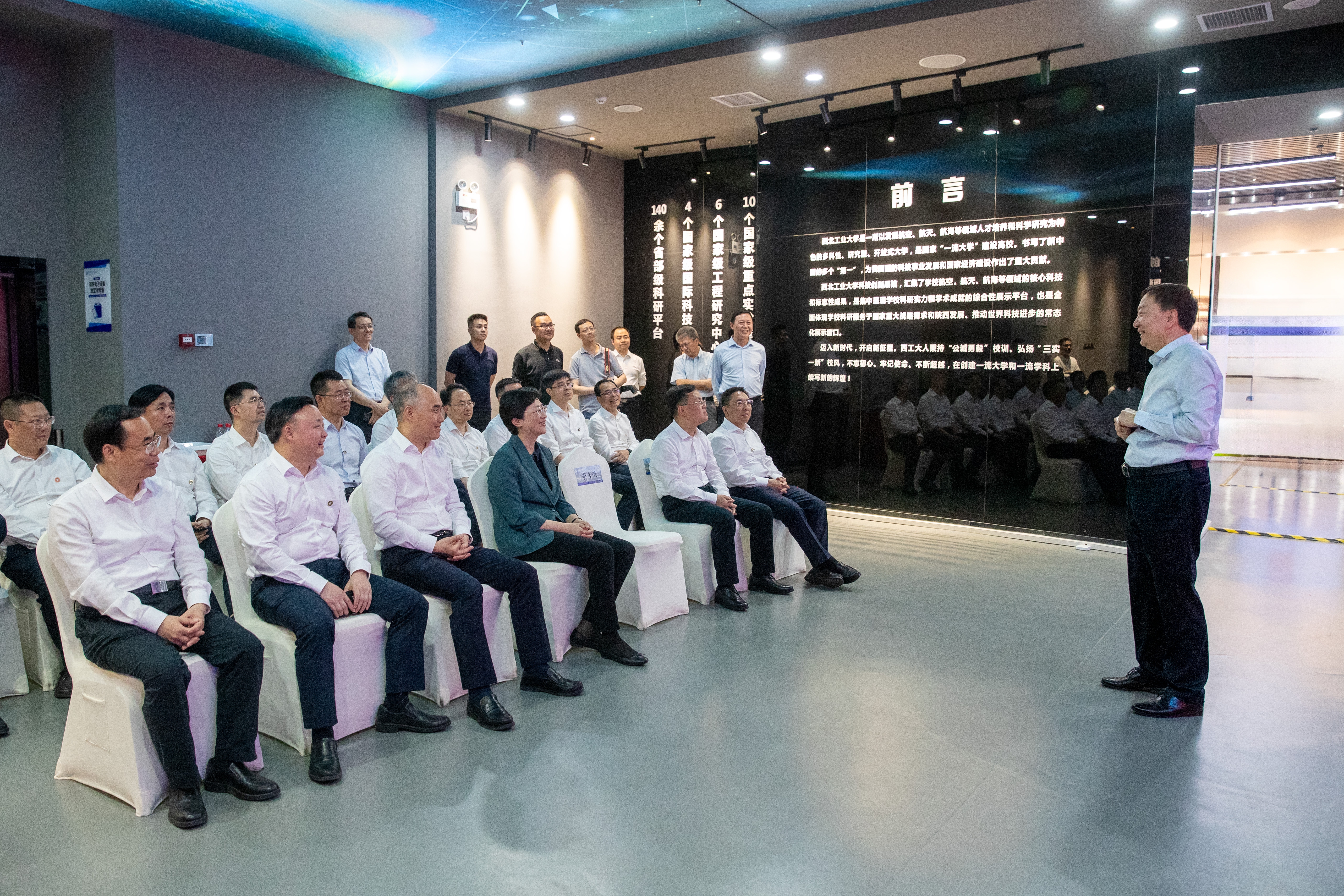 5月14日,四川省委副书记、成都市委书记施小琳率成都市考察团来西安考察。在西安期间,施小琳一行来到鸭脖官网参观了学校科技馆并听取了科技成果转化“三项改革”情况介绍,了解了学校在航空航天航海等领域的科技创新情况和学校的“总师育人文化”,以及推进科技成果转化的经验做法。鸭脖官网党委书记李言荣陪同调研。